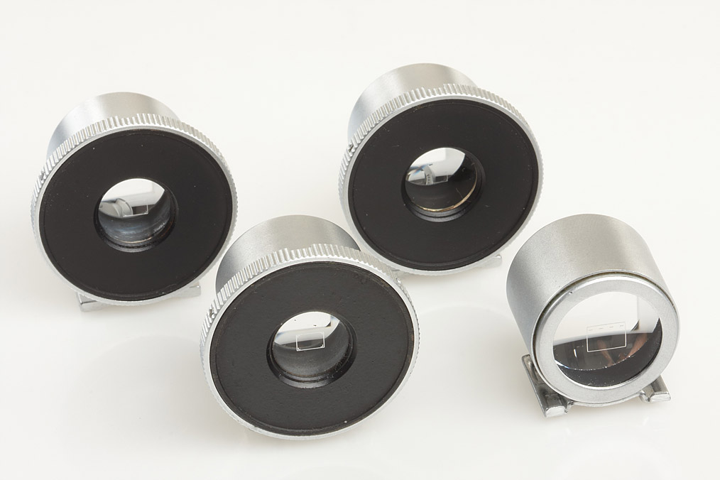 (1) 5cm SBOOI finder, (2) 8.5cm SGOOD finder (feet scale, case), (3) 9cm SGVOO finder (feet scale, case), (4) 13.5cm SHOOC finder (in meter, case) - all in mint condition (4)