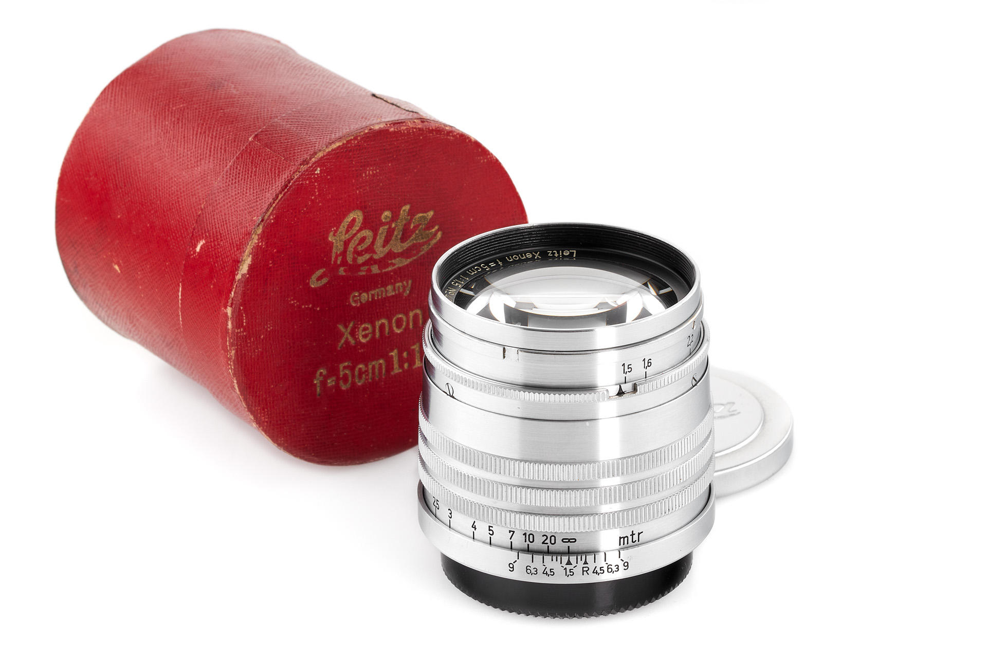 uncoated 3-ring Xenon in outstanding condition, very good optics without any scratch, only a very discrete haze can be seen, with both caps and red maker's box