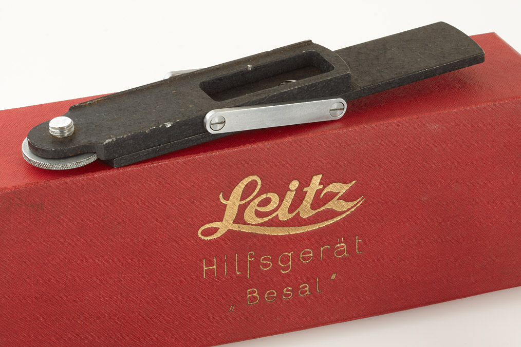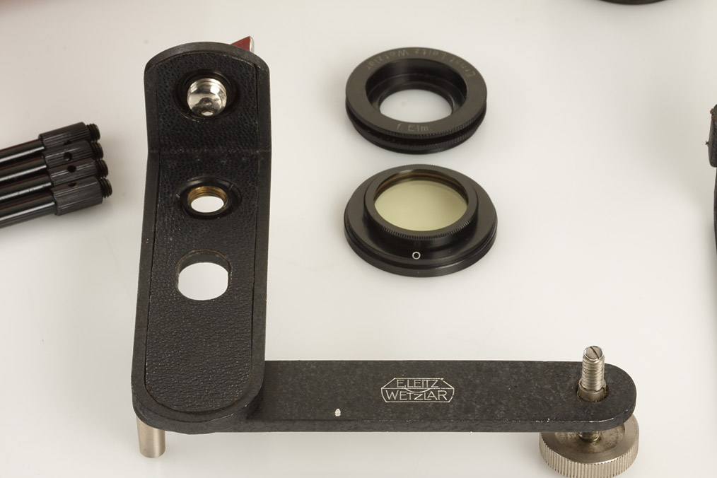 near mint panorama and repro outfit including: FARUX panoramic head in red maker's box with 4 rings (3.5cm, 5cm, 9cm and the very rare 10.5cm), early TOOSF table tripod with nickel screws, FIAVI panorama bracket, FIBLA black spirit level in maker's box, BESAL repro copying unit complete in red maker's box with all close-up lenses (ELPRO, 2x ELPIK, 2x ELPET) in maker's boxes, yellow filter FIRHE in maker's box, yellow filter 0 in maker's box and adapter VMCOO, FIATE stereo bar (18)