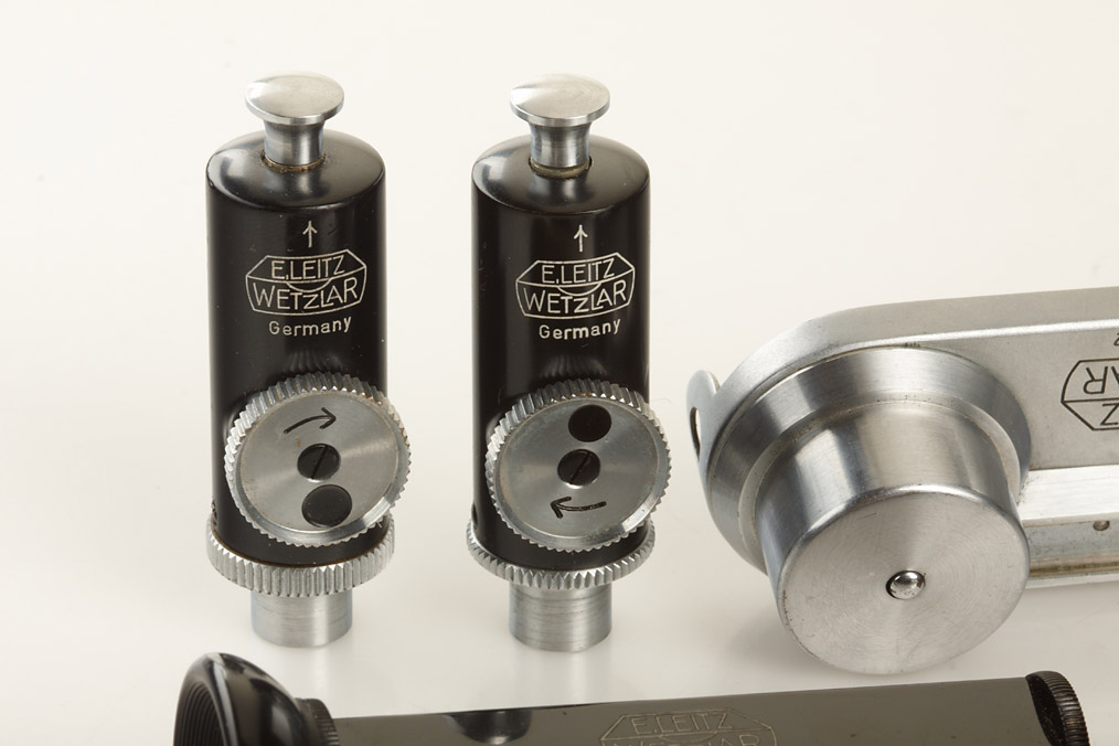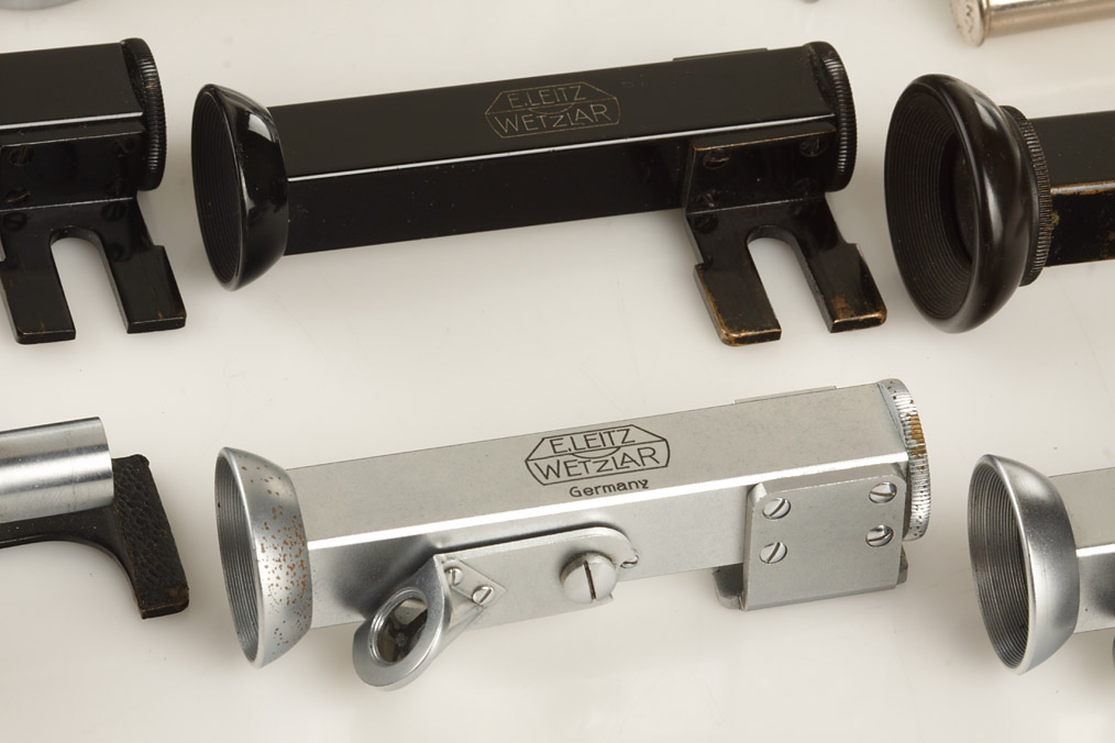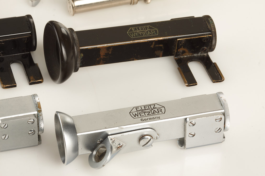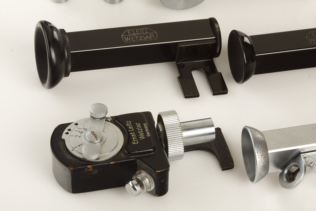 3x early black WINKO, 2x chrome late WINTU with leather cases, black/chrome HEBOO slow speed attachment, 2x APDOO self timer (1x case), DIREKT self timer, OZTNO cable release adapter, chrome SCNOO rapid winder (band broken) (11)