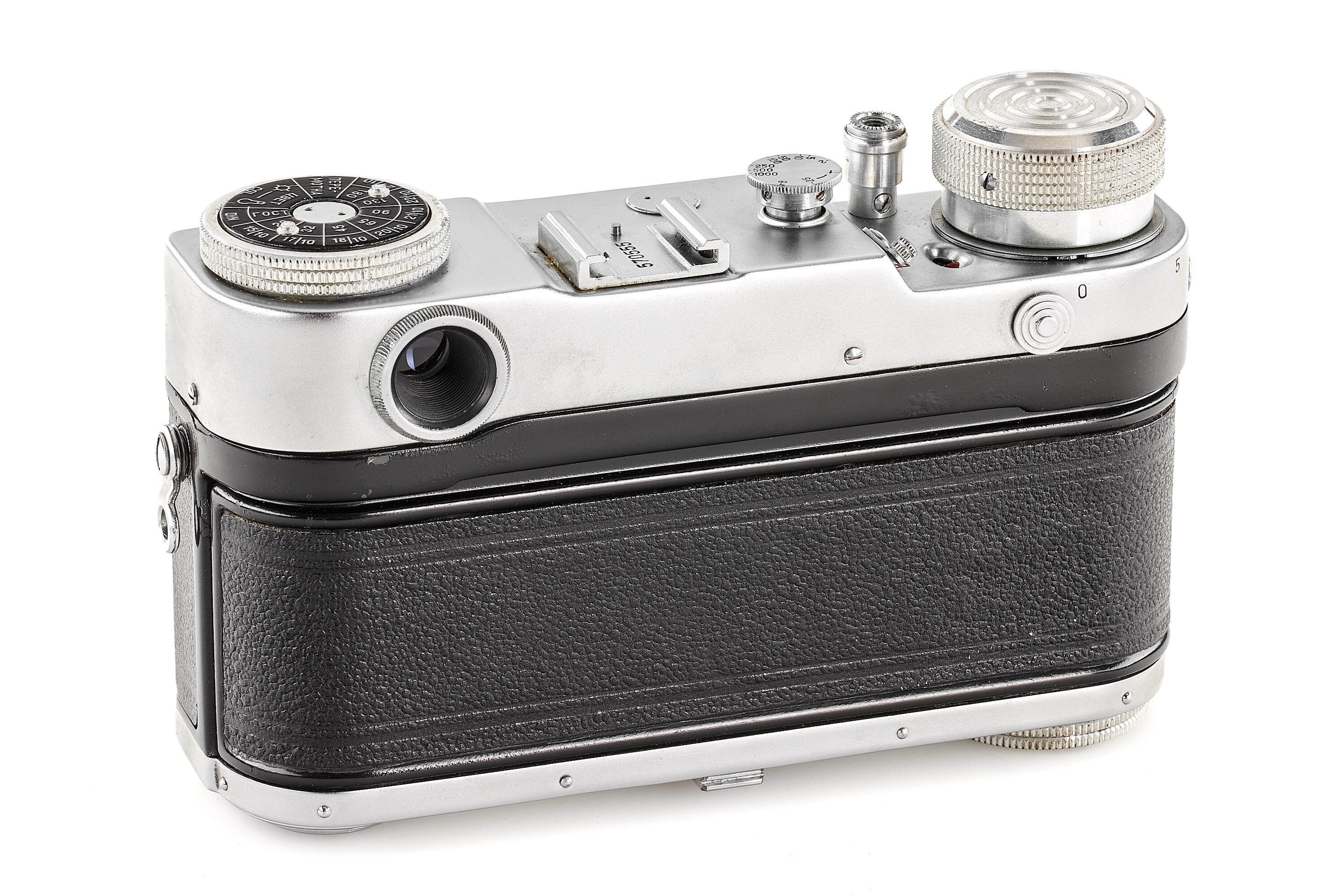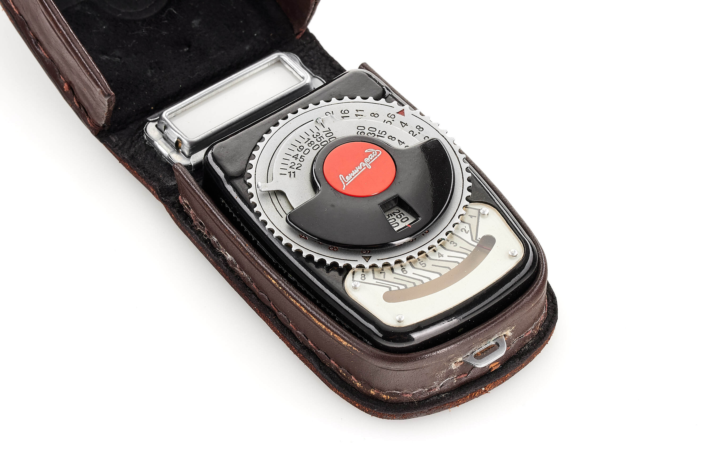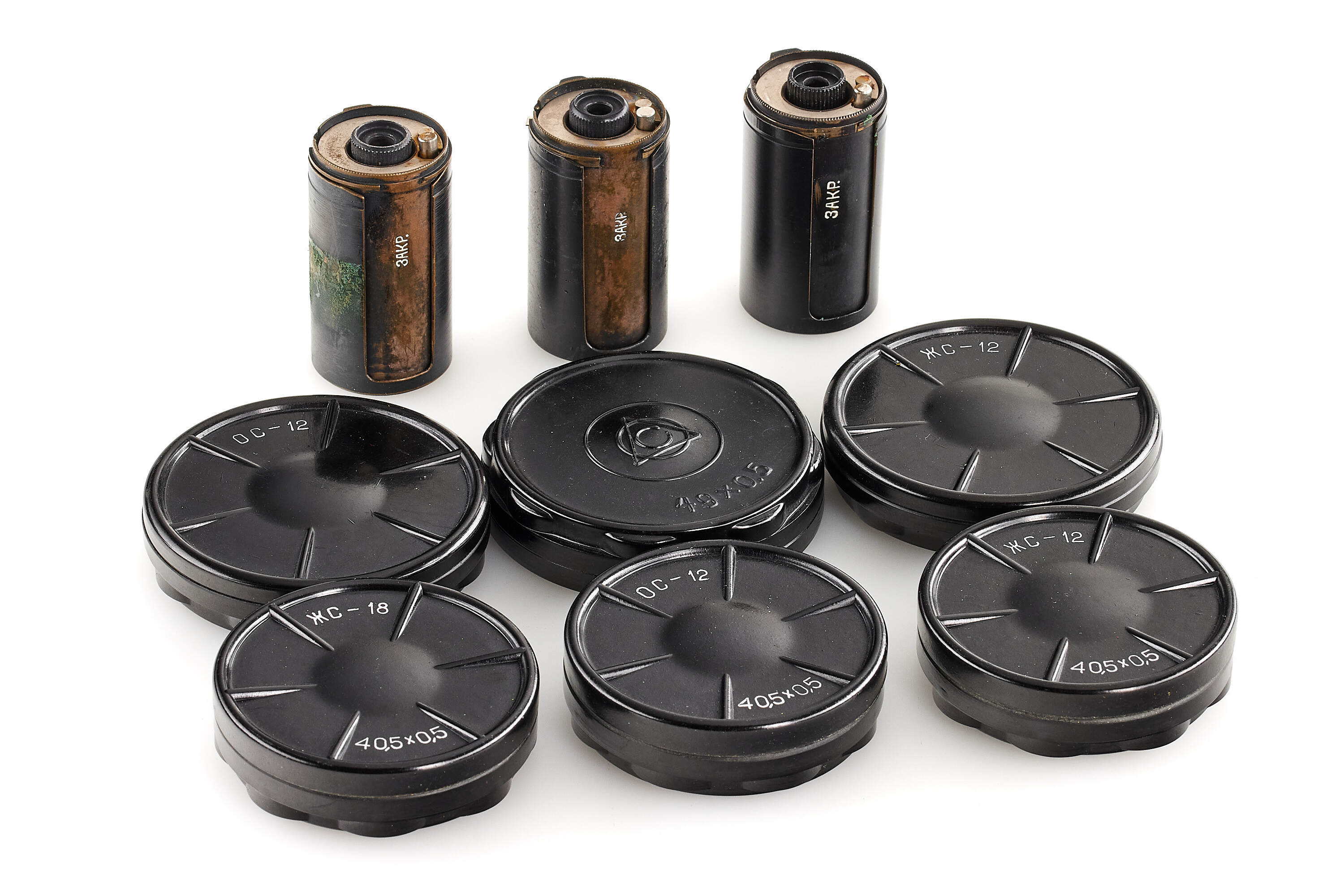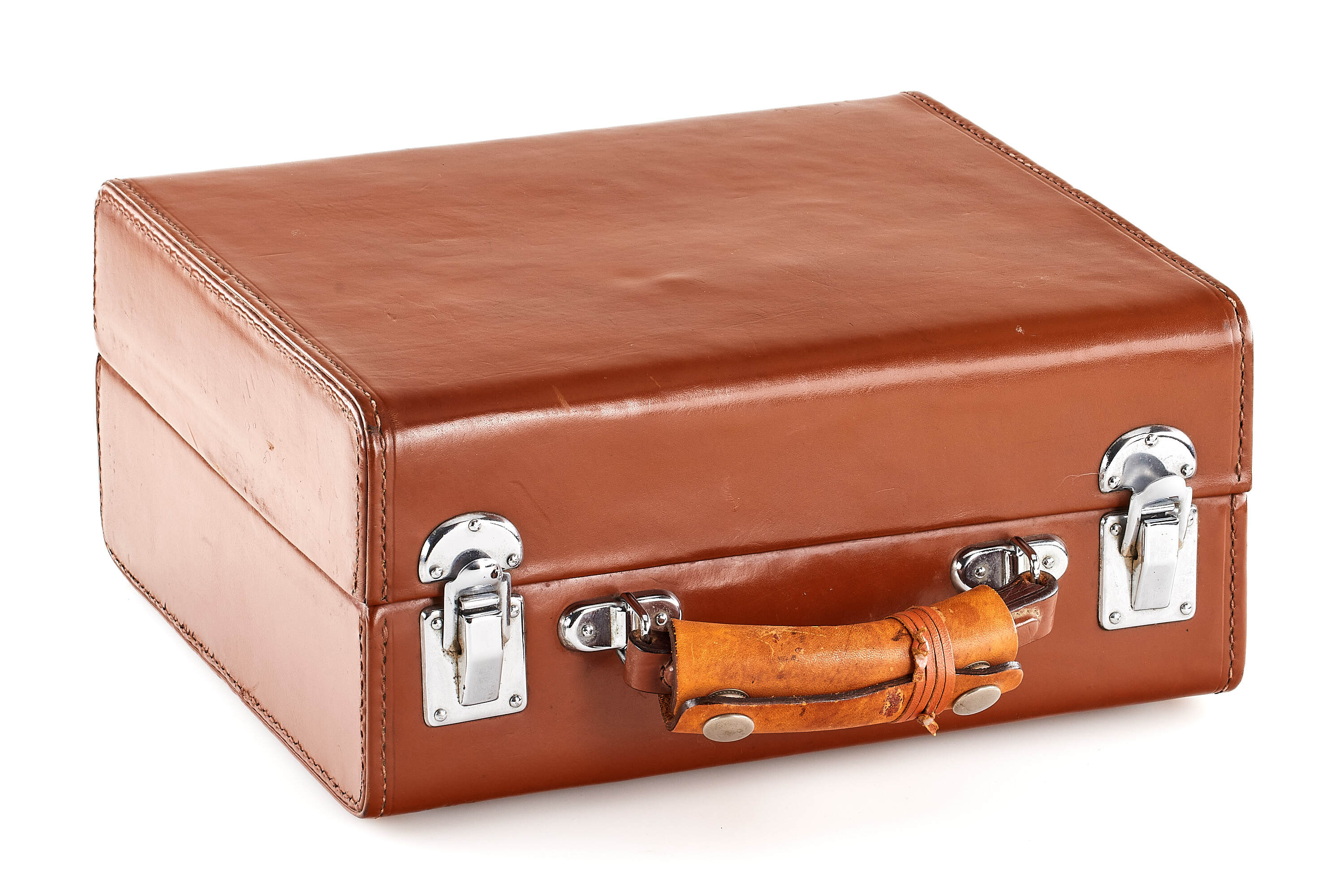 An exceptional and complete presentation set featuring a first-series Leningrad camera from 1957. Specially ordered by the government as a prestigious gift, the set is supplied in a high-quality leather case. It includes five M39 lenses: Jupiter-12 2.8/35 mm no. 5701723, Jupiter-8 2/50 mm no. 5621710, Jupiter-3 1.5/50 mm no. 5705213, Jupiter-9 2/85 mm no. 5604745, and Jupiter-11 4/135 mm no. 5703733. The ensemble is further complemented by six filters, three film cassettes, and a Leningrad exposure meter.