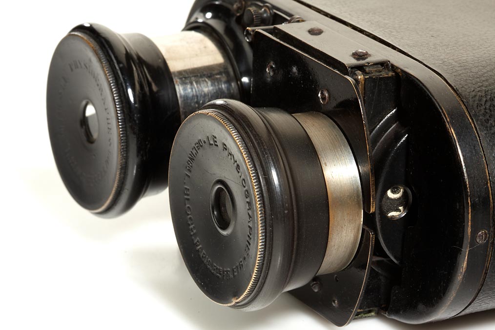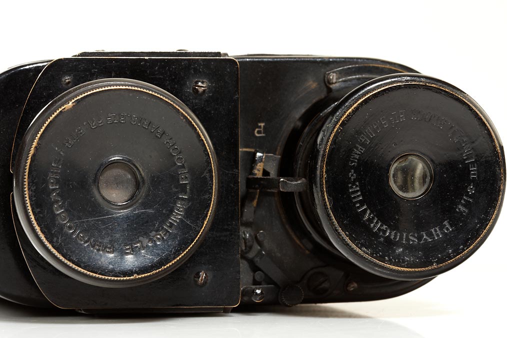 very rare stereo detective camera for plates 45x107mm in push-pull magazine, Cooke lenses nos.20890/91, in original condition, original case: LE PHYSIOGRAPHE