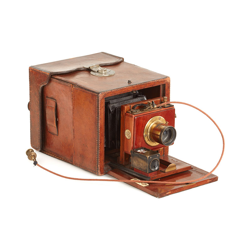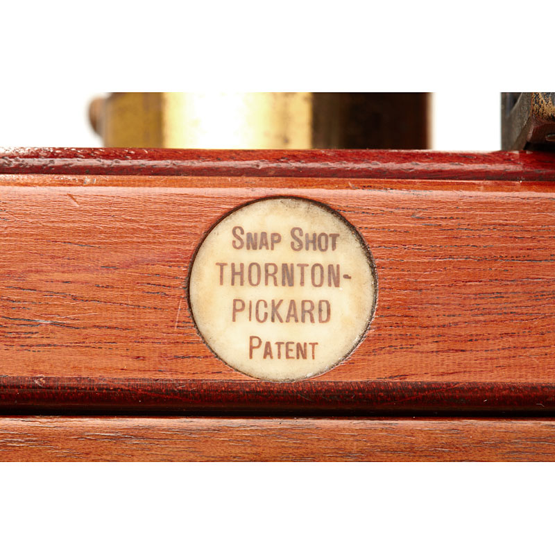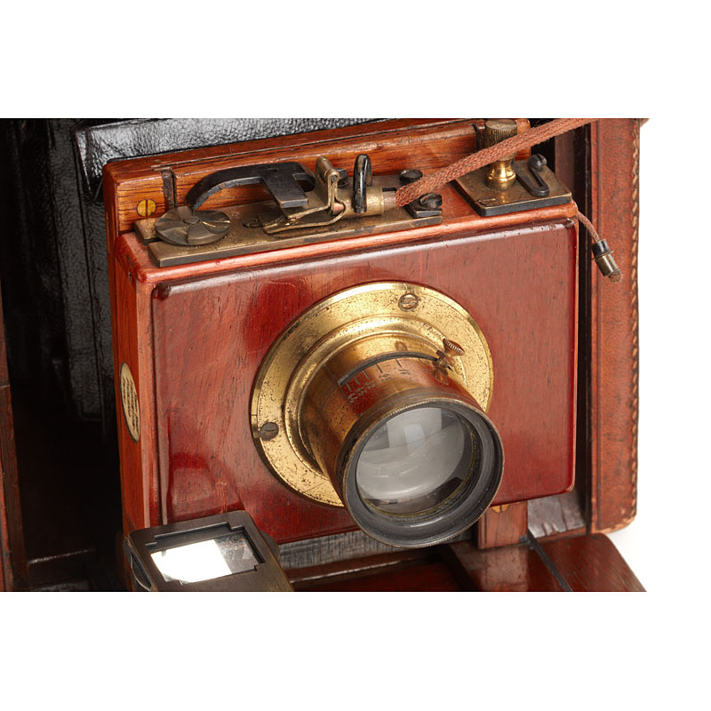 very rare British detective camera for 3 1/4 x 4 1/4" plates, f/8 brass lens in Thornton Pickard Snap Shot shutter, cable release, in fine original condition, see McKeowns Price Guide p.621