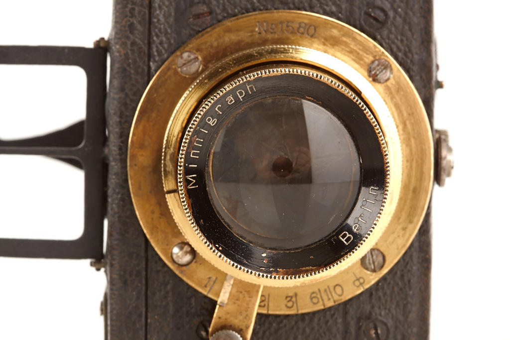 classic camera for 18x24mm exposures, forerunner of Leica, fast brass Minnigraph 3.0 lens, one spool inside