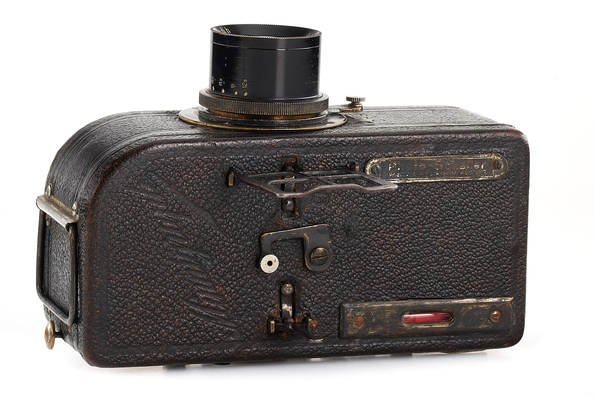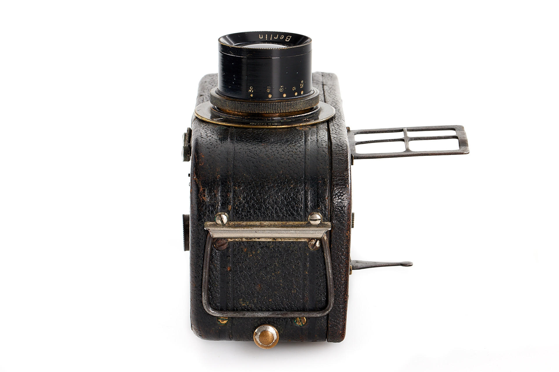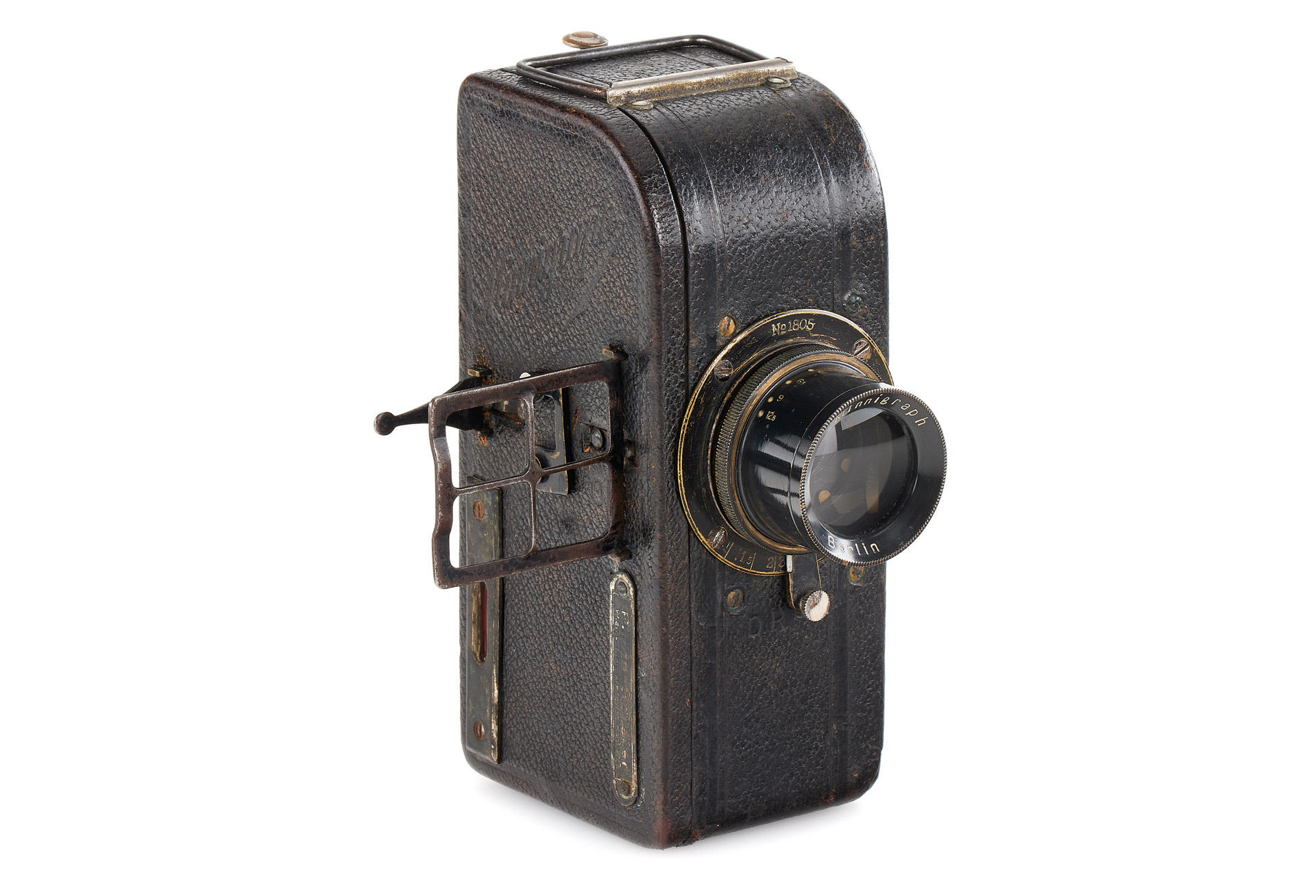 Very important camera considered as the first 35mm photo camera, for 18x24mm exposures, forerunner of the Leica, in user condition, with Pentagraph Berlin f3.0 lens, including 1 spool