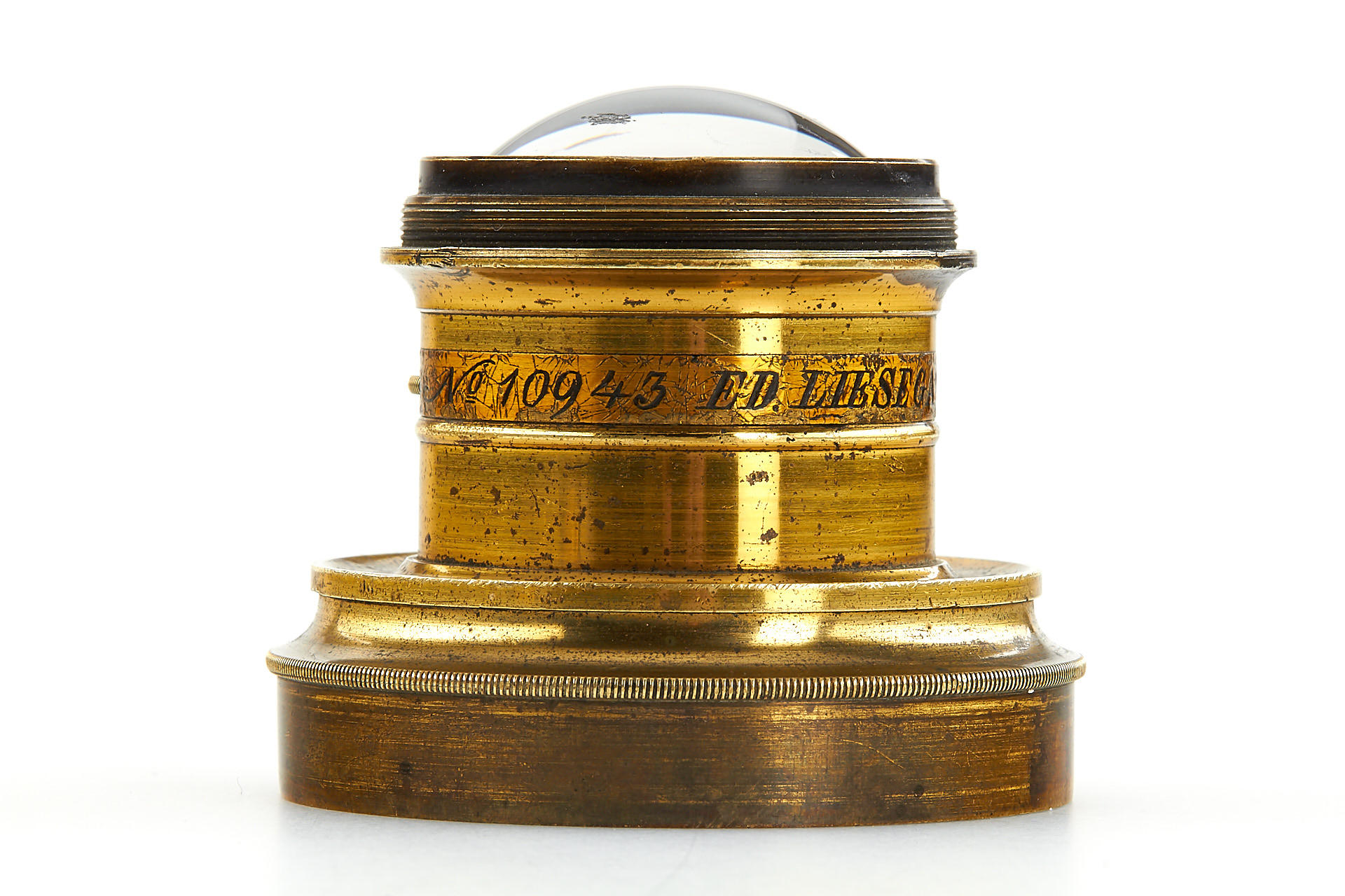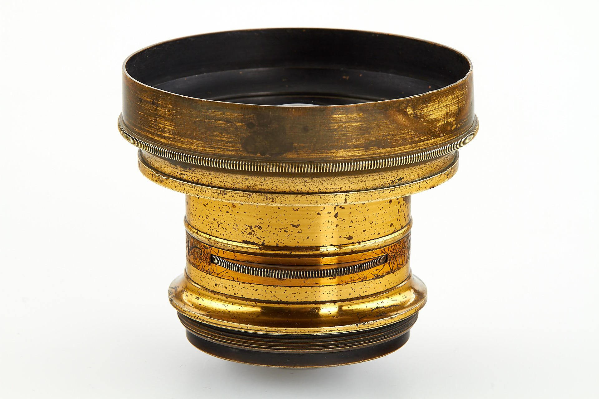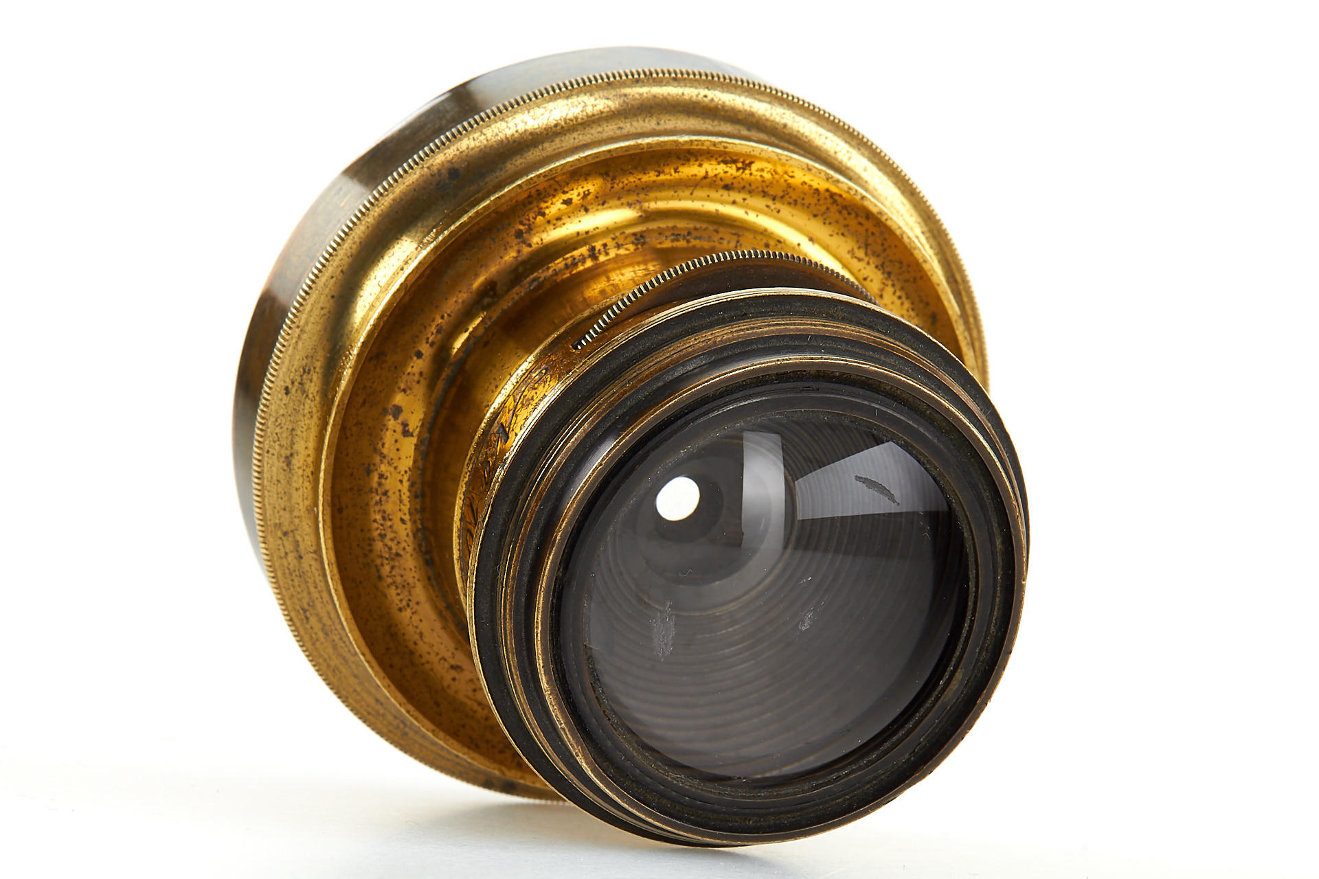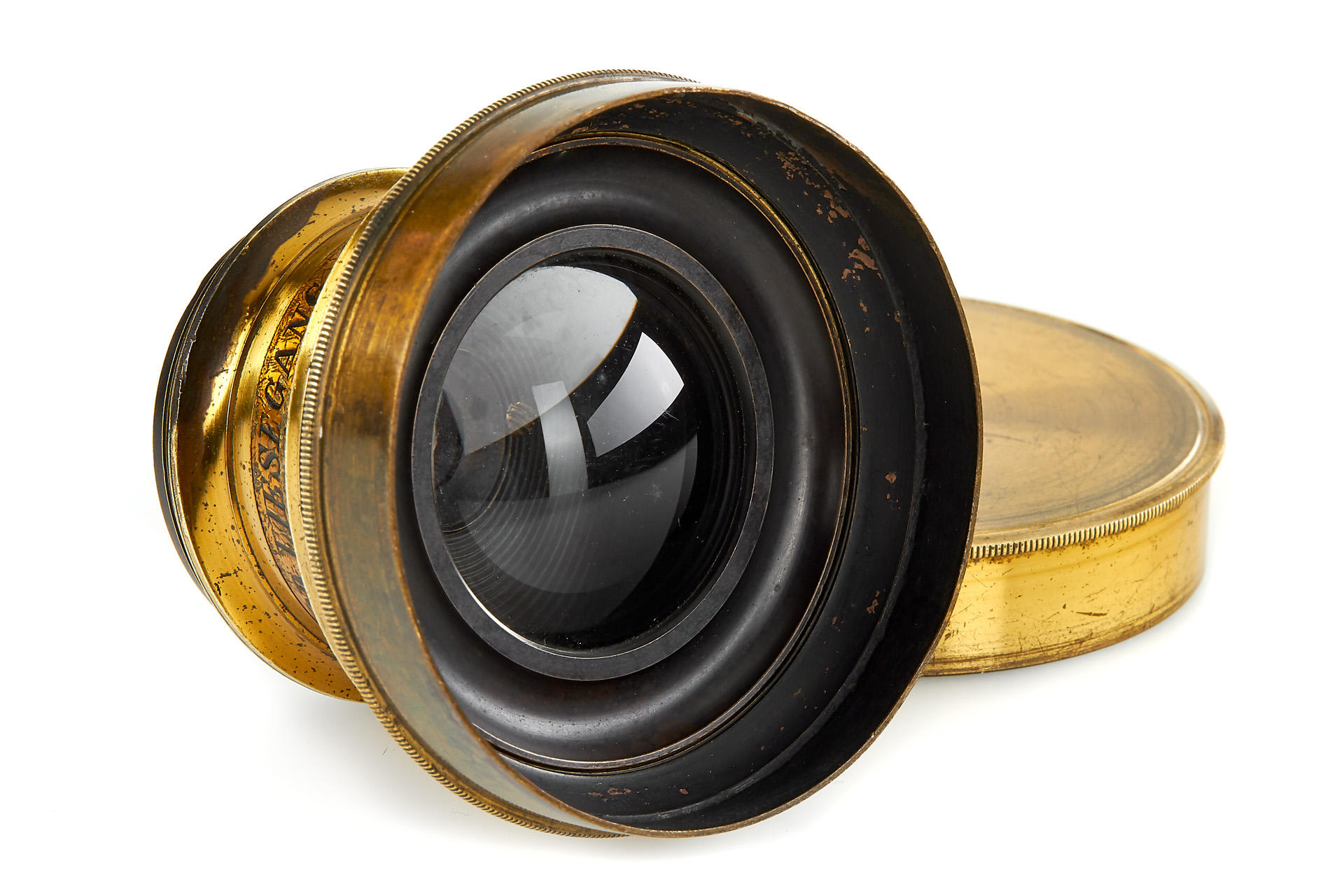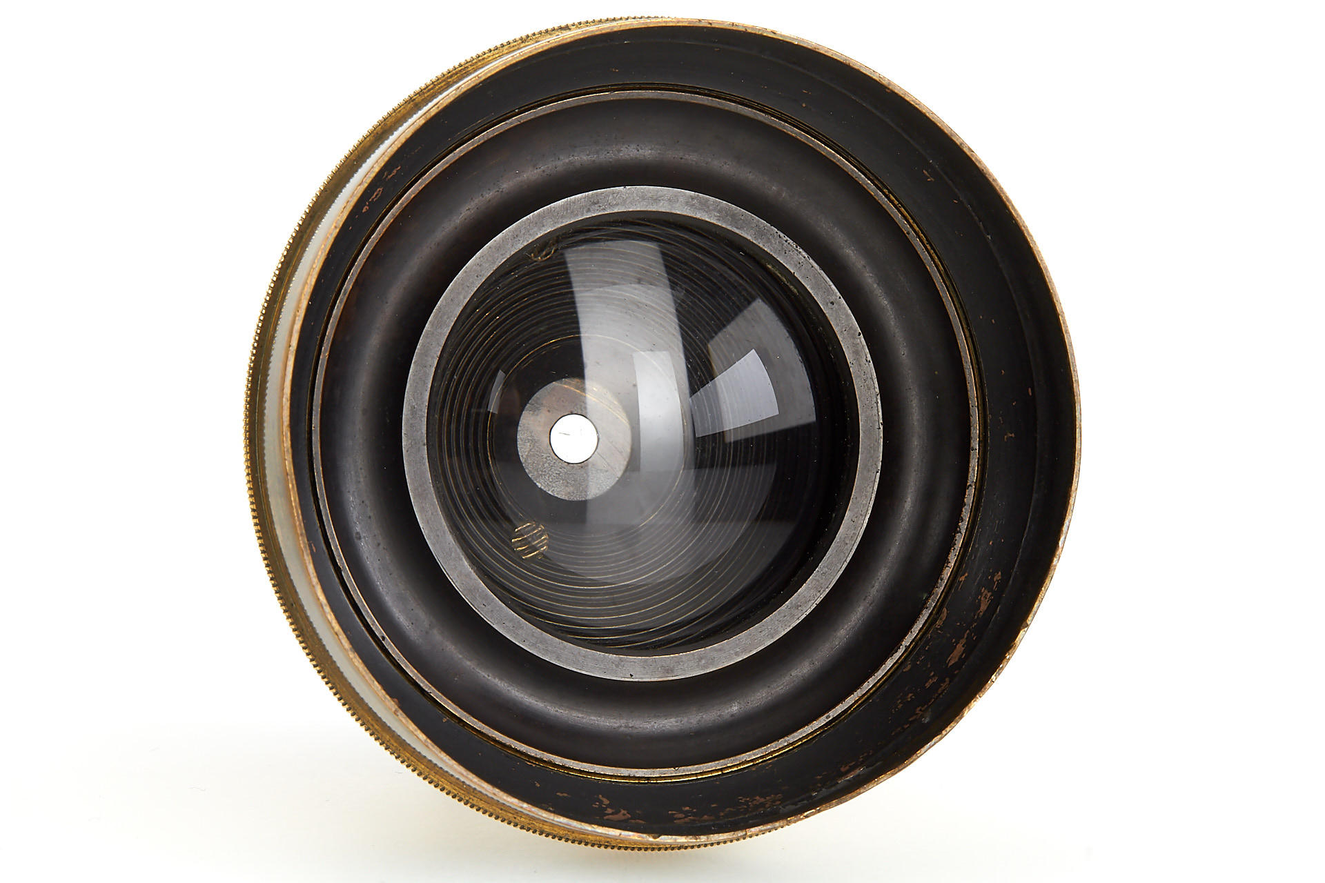 a very rare, early wide angle lens, construction similar to the Harrison Globe, with two spherical lens elements forming almost a perfect sphere, height incl. hood c.54mm, in good original condition, optics with slight scratches (still usable, with short hood and front cap