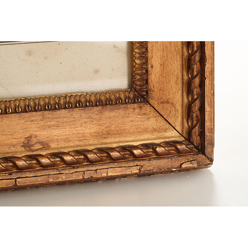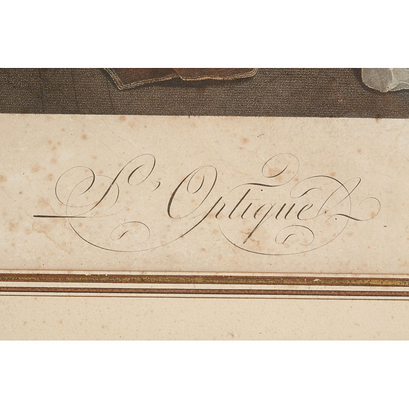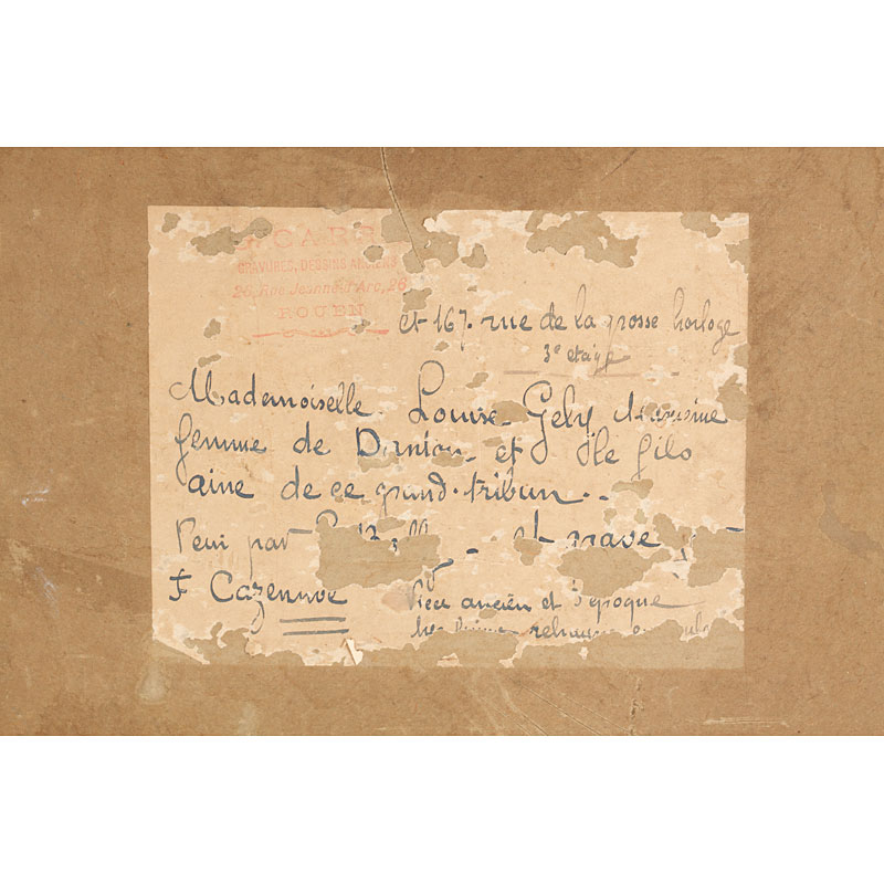 Lithopgraphy of a painting of L.Boilly and engraved by F.Cazenave, printed in Paris. It shows Louise Gely Sébastienne, second wife of Antoine Danton, and eldest son of his first wife in front of a Zograscope viewer (this device allows a magnified view of a perspective that is placed behind the foot on a table). In gilt wooden frame (69 x 83 cm)