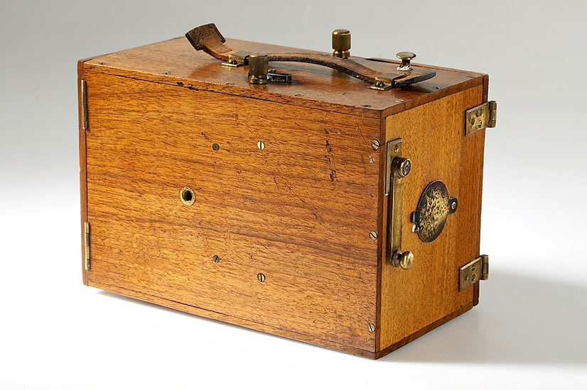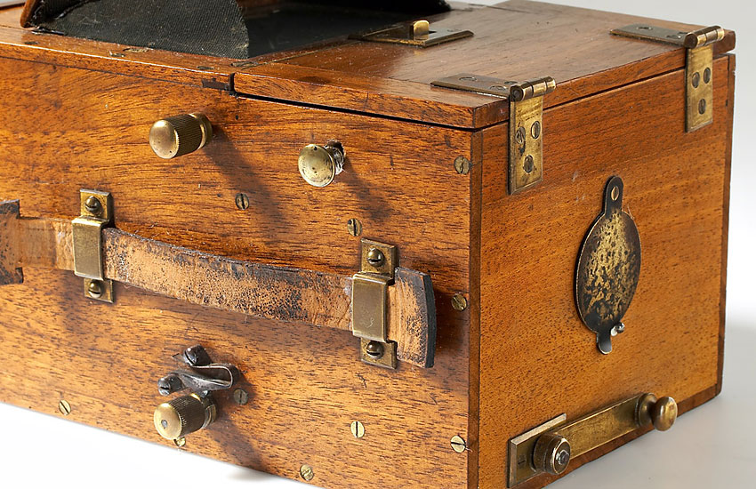 1/4 plate, box style SLR, polished wood, brass fittings, complete and top condition