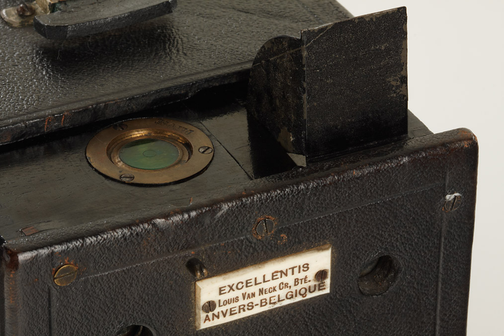 very rare Belgian 9x12cm magazine detective camera made by Louis Van Neck Cr, Bte ANVERS-BELGIQUE, two reflex finders, unnamed lens, in original condition