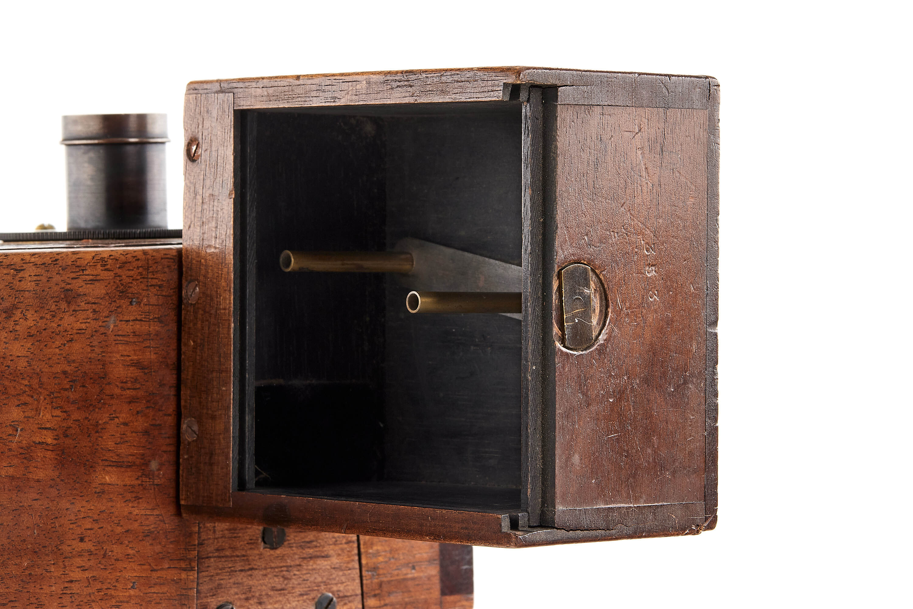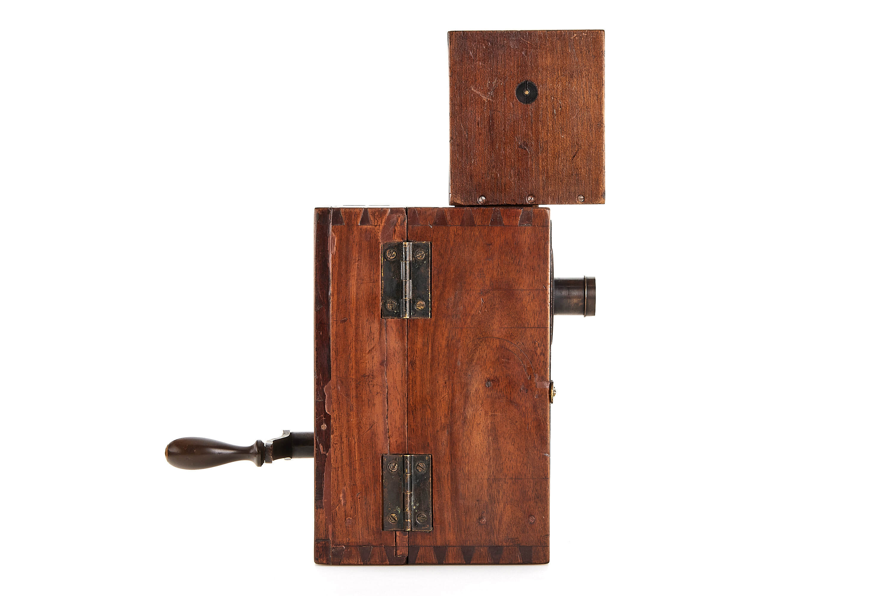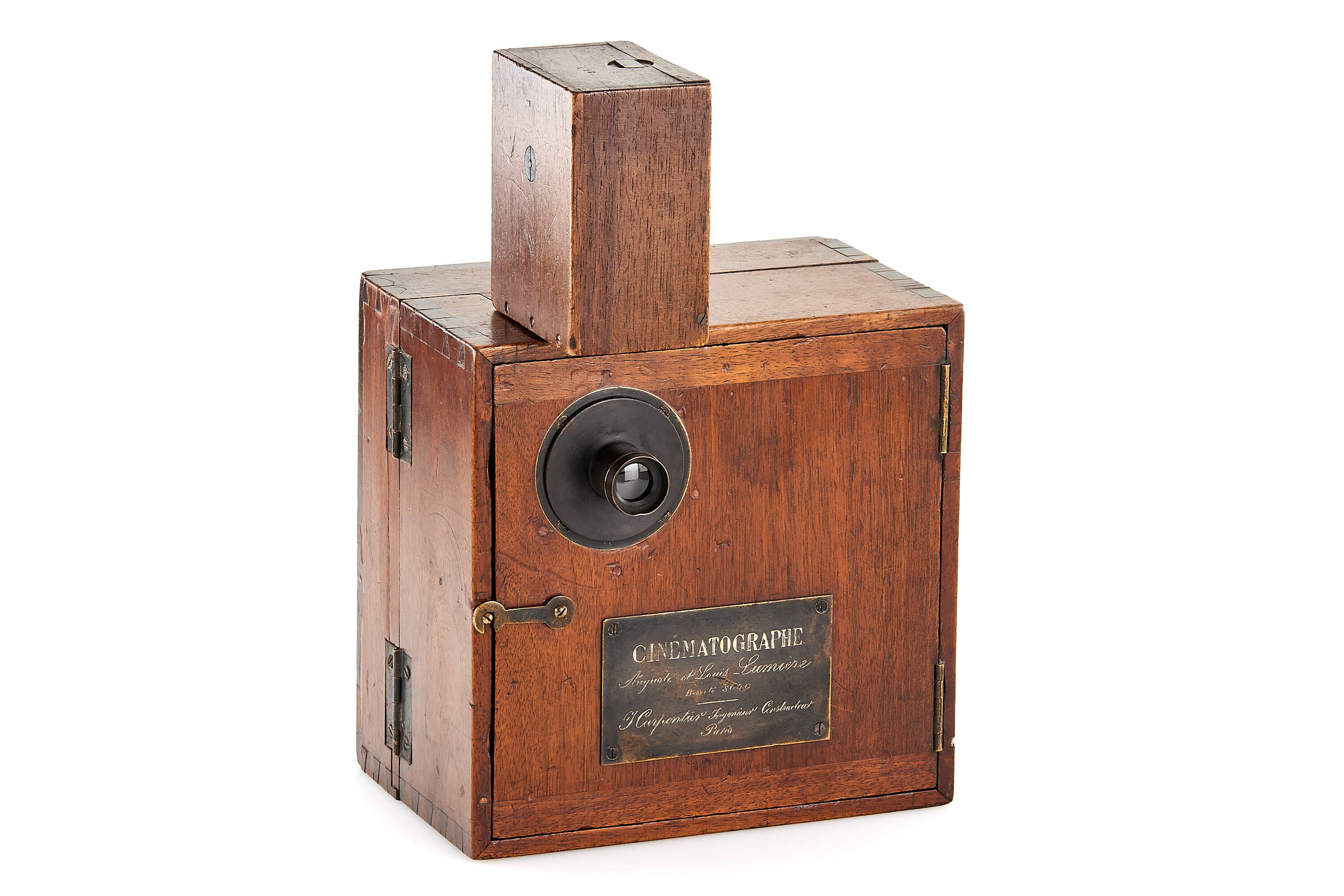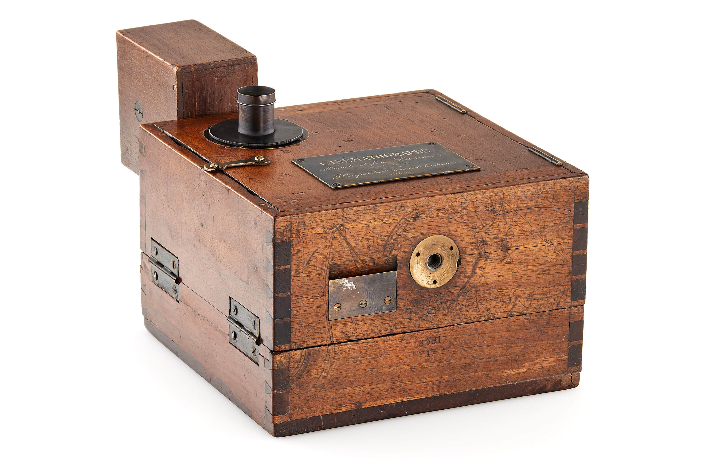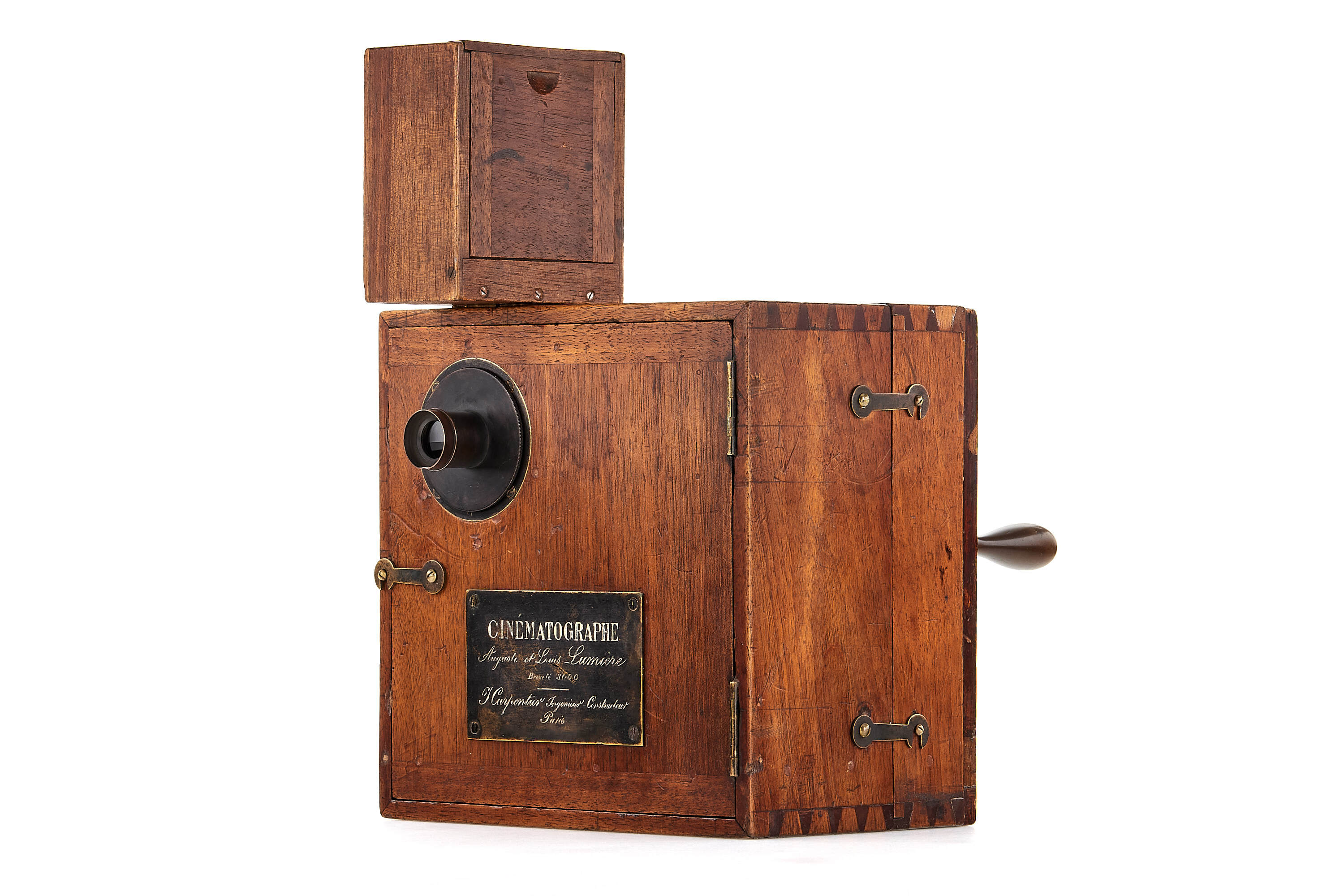 The offered ensemble comprises an original Lumière Cinématographe no.207, complete with its taking lens and matching projection lens, preserved together with its original wooden film cassette and the original wooden tripod featuring the characteristic slot for film. The apparatus is in excellent, well-preserved condition and remains in working order, with smooth mechanical operation. As an early production example of this foundational device, it represents a highly important survival from the very beginnings of cinematography.