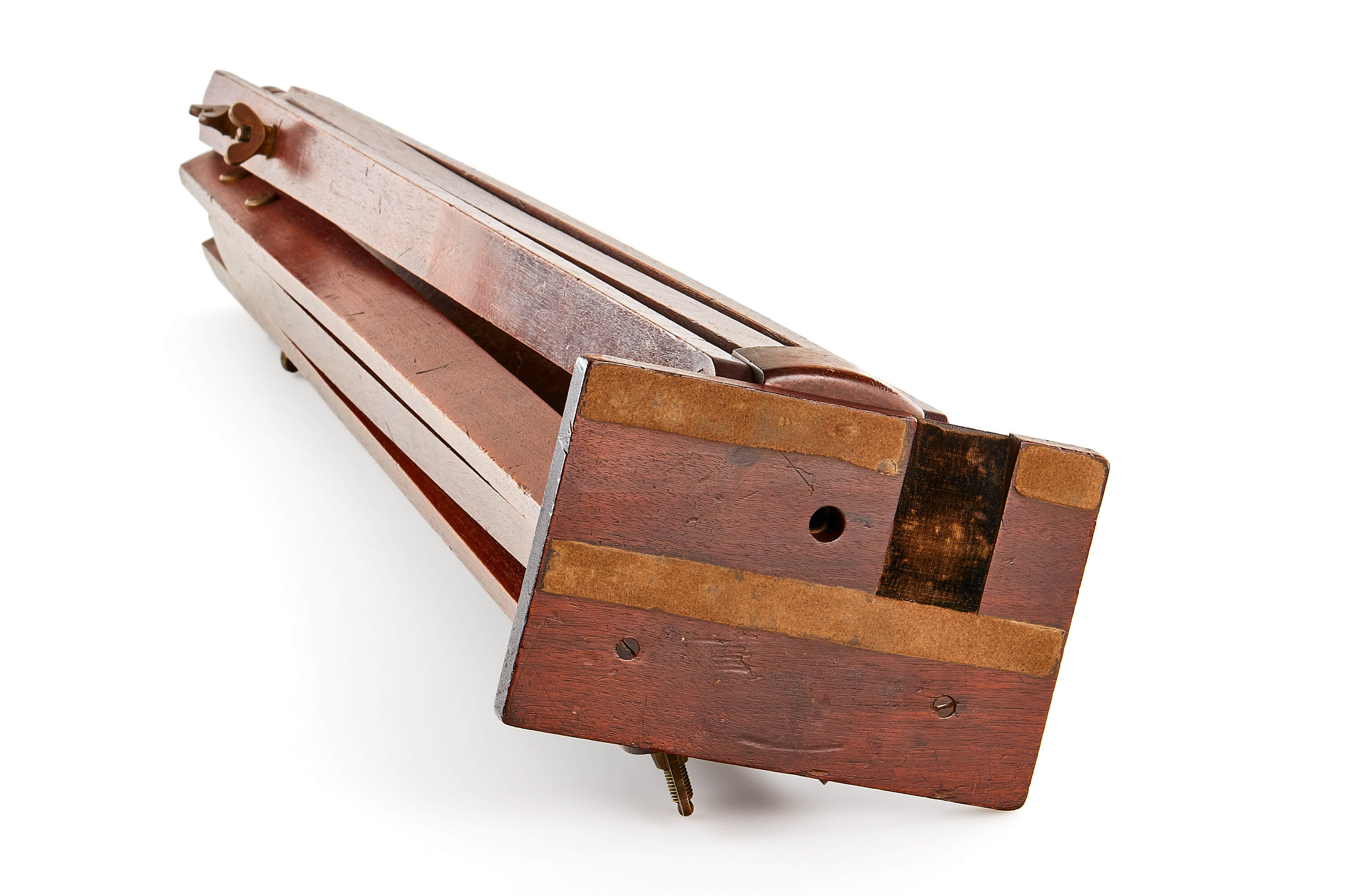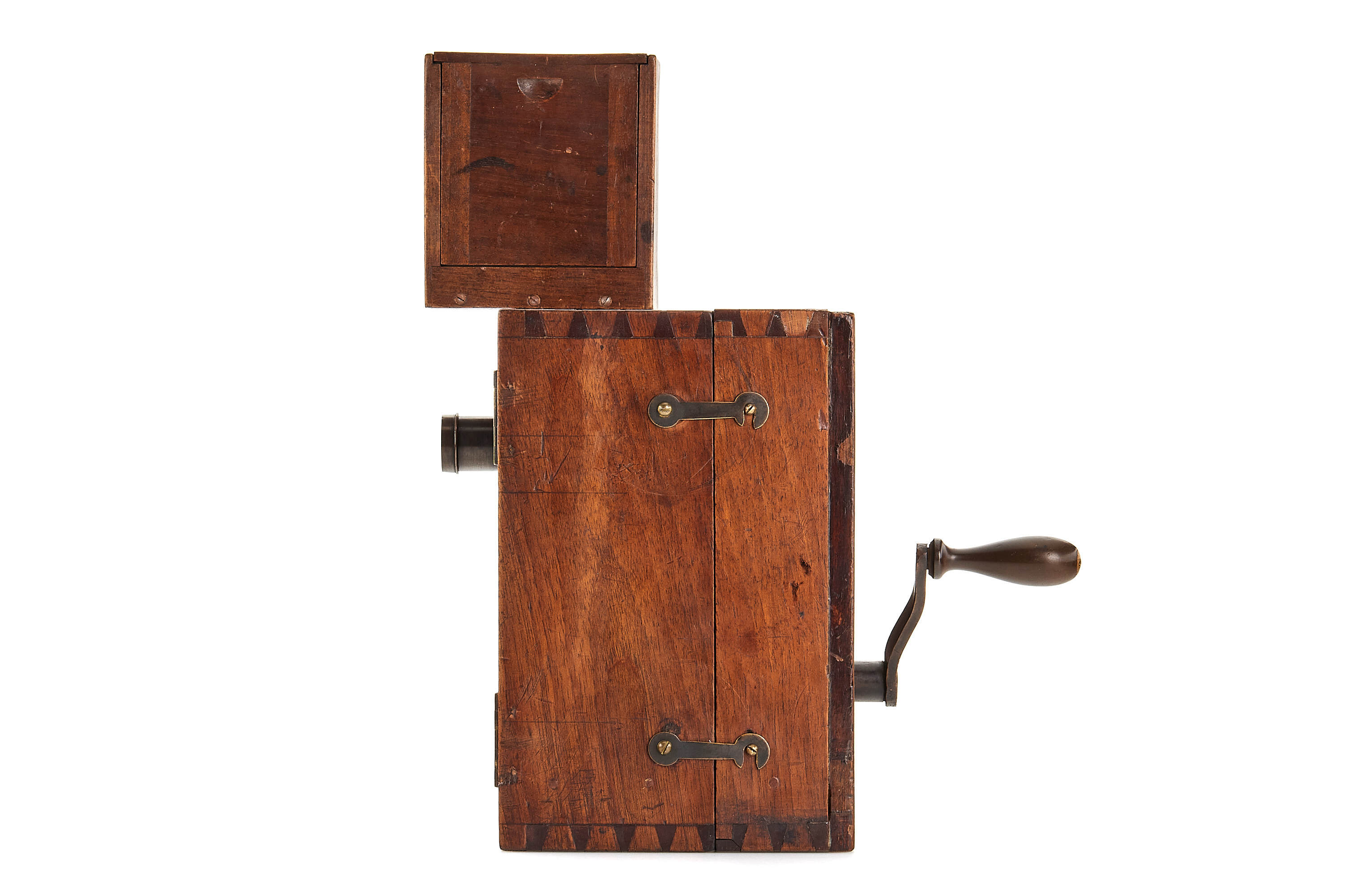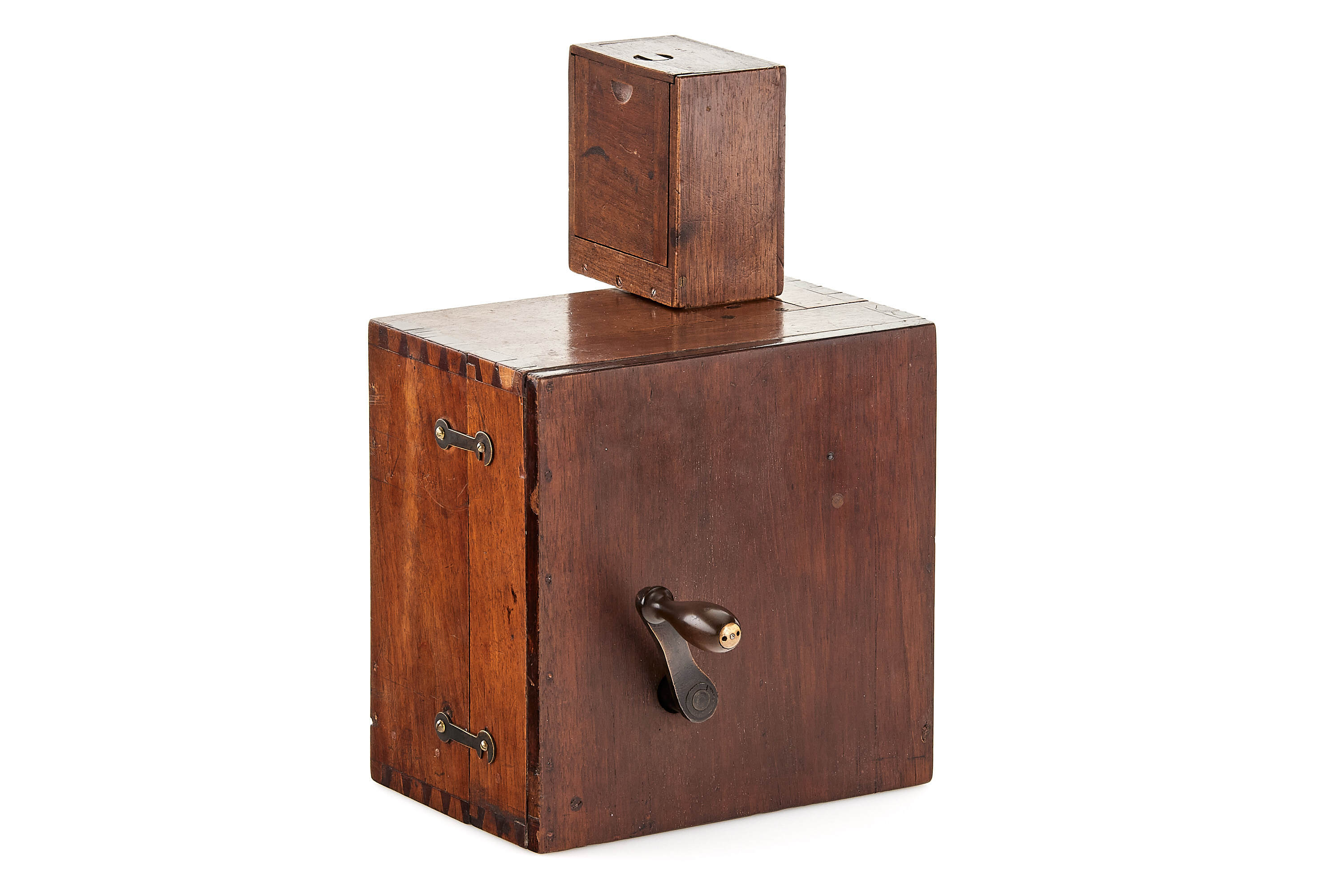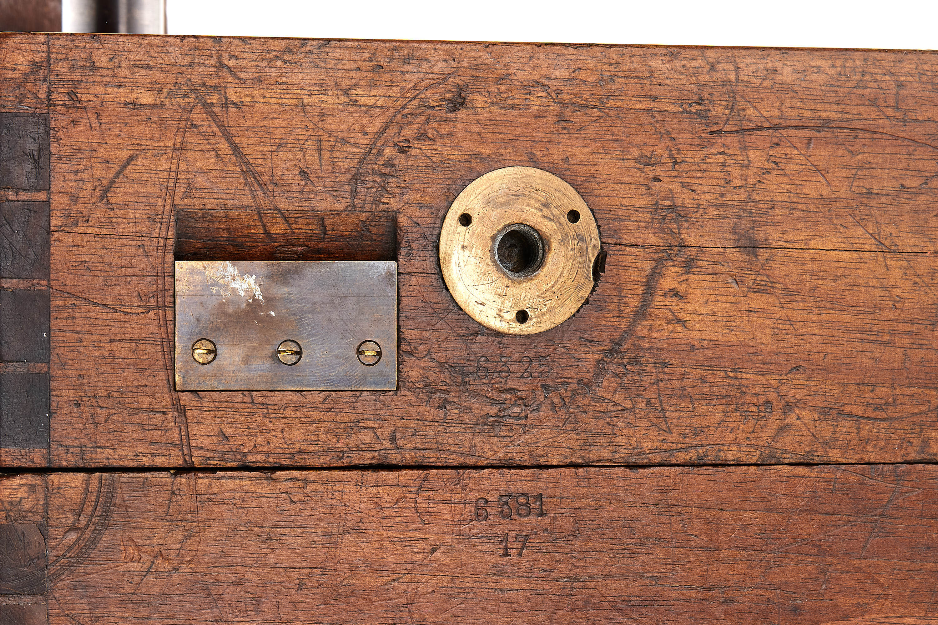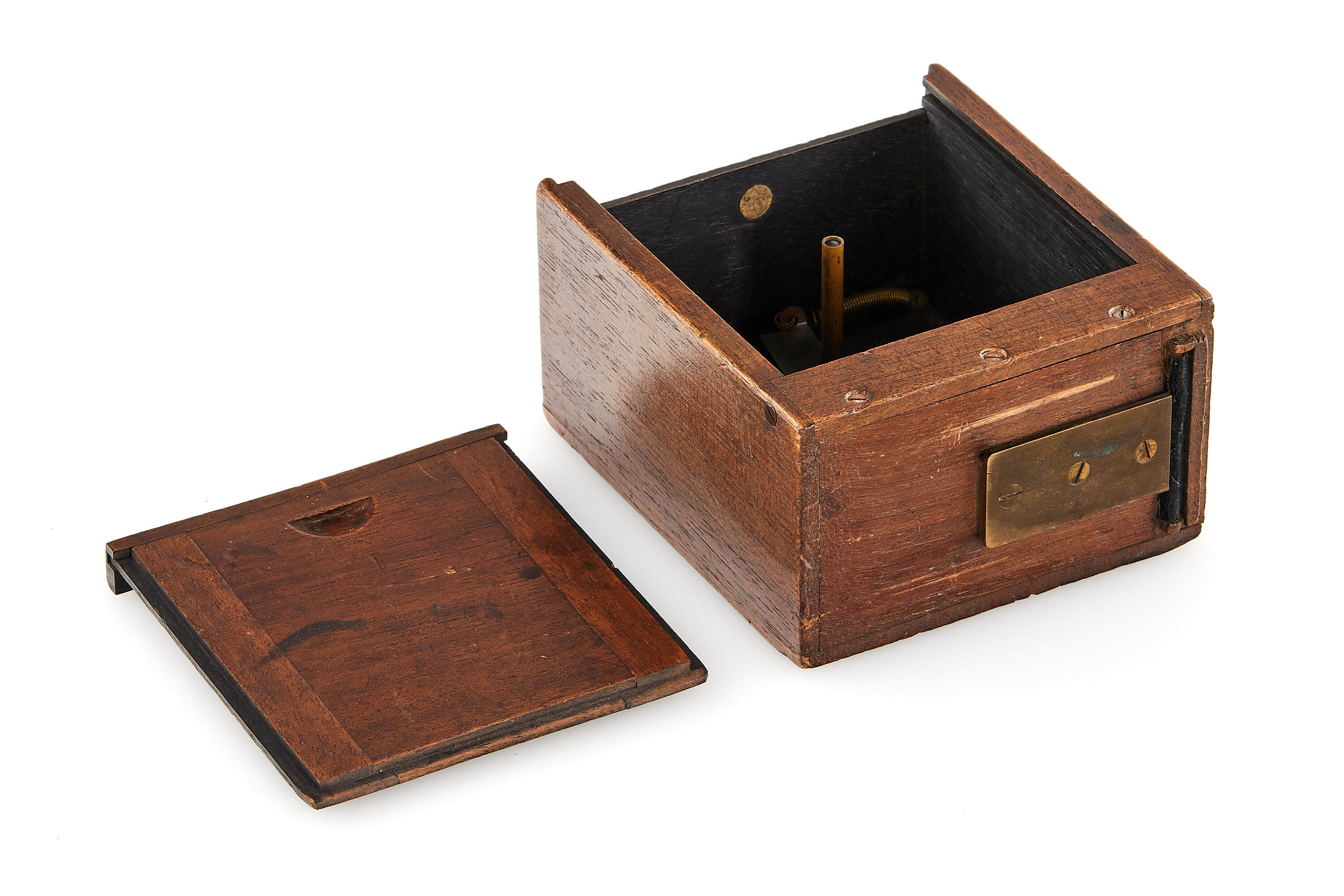 The offered ensemble comprises an original Lumière Cinématographe no.207, complete with its taking lens and matching projection lens, preserved together with its original wooden film cassette and the original wooden tripod featuring the characteristic slot for film. The apparatus is in excellent, well-preserved condition and remains in working order, with smooth mechanical operation. As an early production example of this foundational device, it represents a highly important survival from the very beginnings of cinematography.
