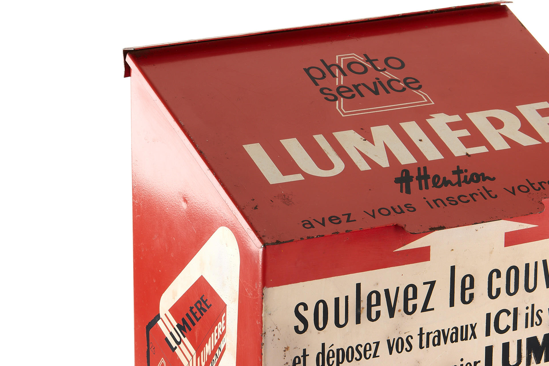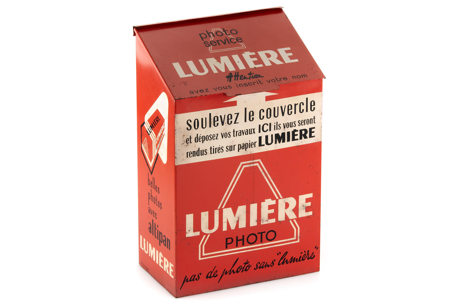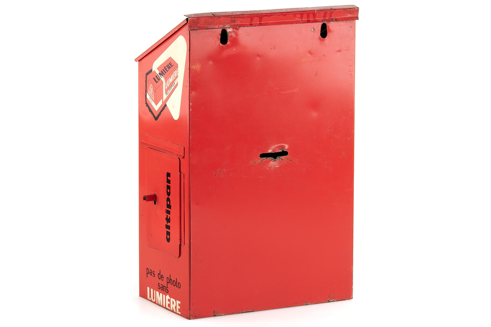 Rare French film throw-in box, in very good condition, c.40cm high and 26cm wide, key missing