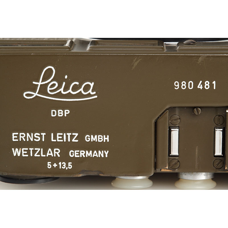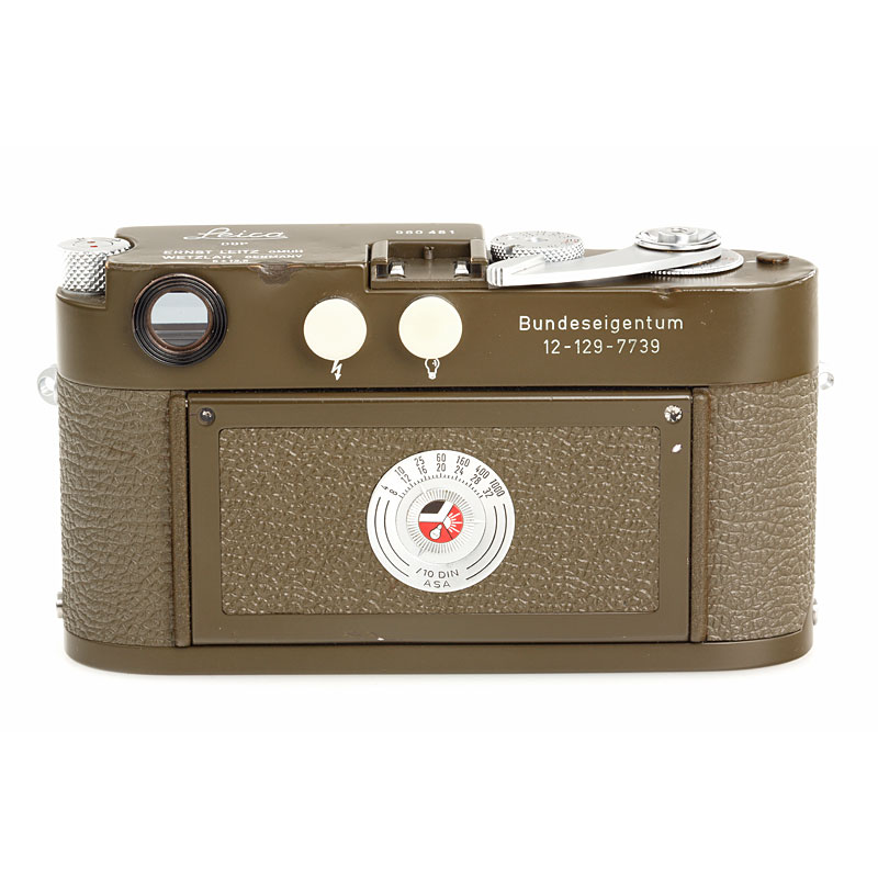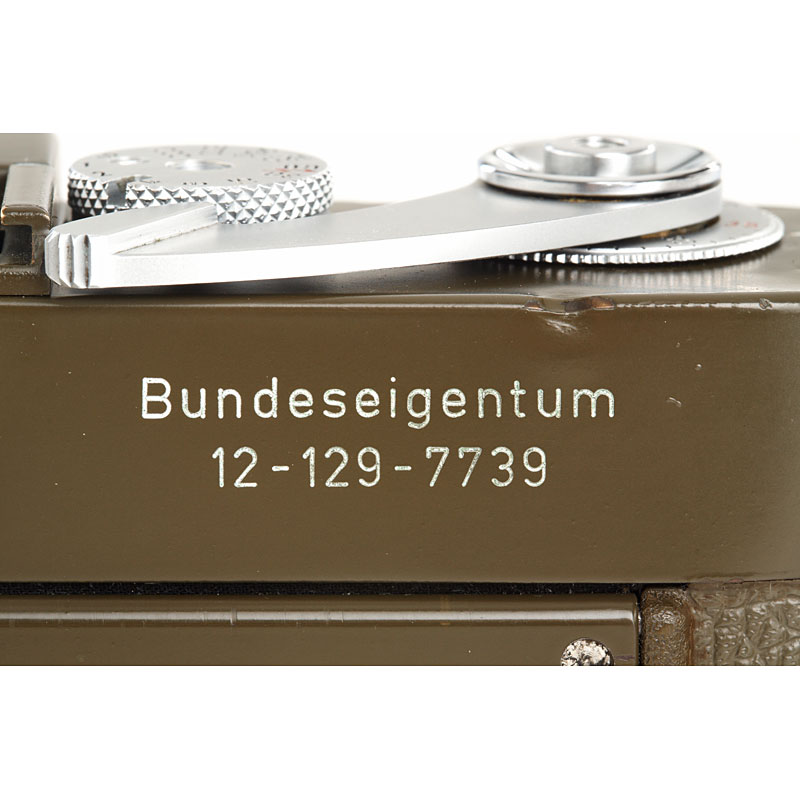 fully original early type M1 green engraved "Bundeseigentum 12-129-7739", rare type with 5+13,5cm engravings near eyepiece, with MP top plate (only 75 of these cameras were produced and delivered to Wilhelmshaven in 1961), cap