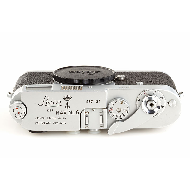 original military M1 engraved with crown, anchor and 'NAV.Nr.6' on top plate, delivered on April 28th, 1960 to Nordisk Optisk (Danish Leitz agency) with delivery number 82459 (cap)