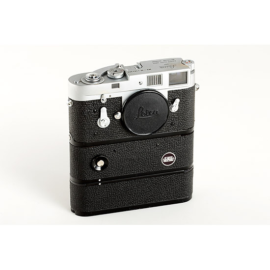 very rare M2-M with matching E.Leitz New York Motor Drive 14000 no.02966 with film loading guide, in very fine condition (only little wear near rewind lever and rewind knob, the motor in fully working condition with AA battery pack, cap, baseplate