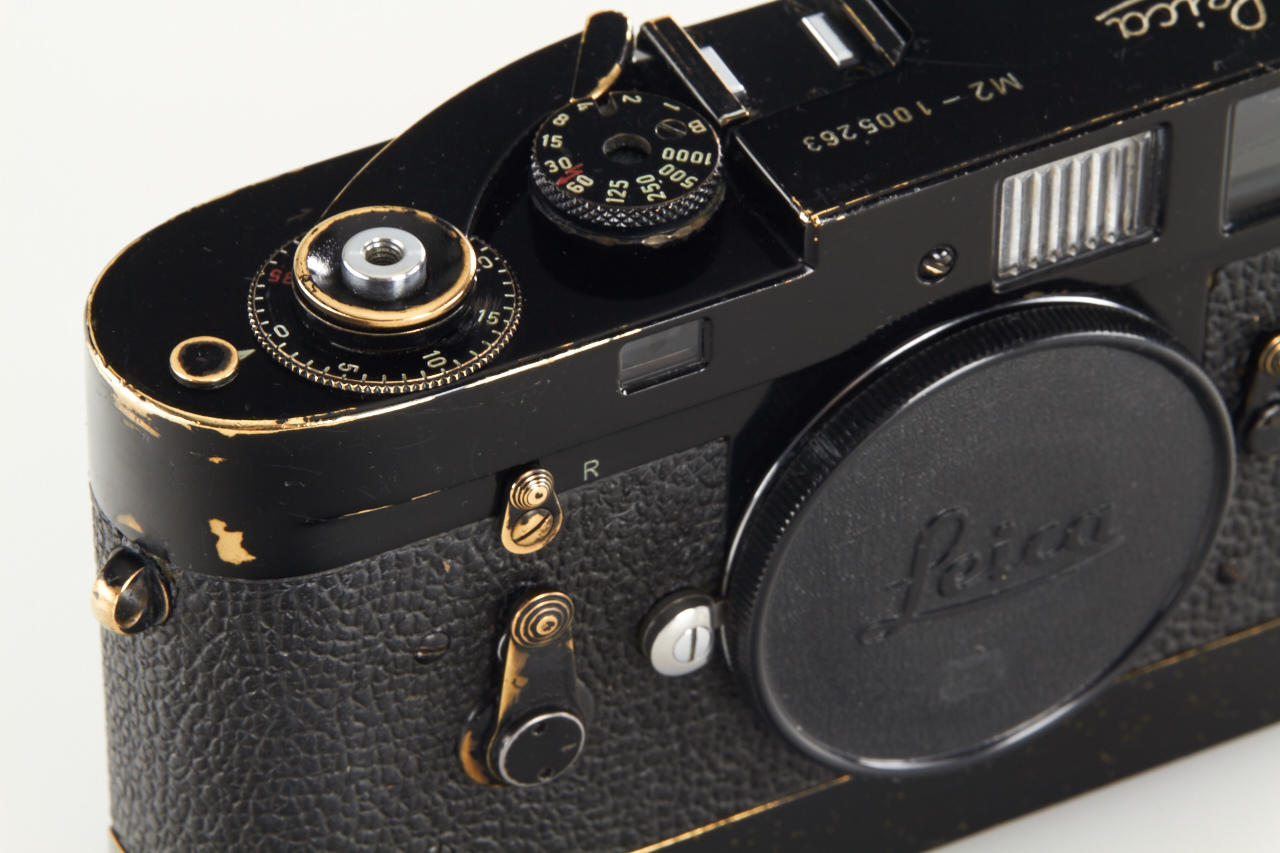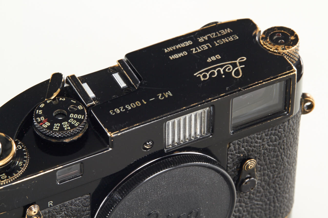 very rare M2 black paint with self timer in original condition from an official batch of 250 cameras delivered in May 1960, in perfect working order, with matching black paint Leicavit MP in working order (partially repainted)