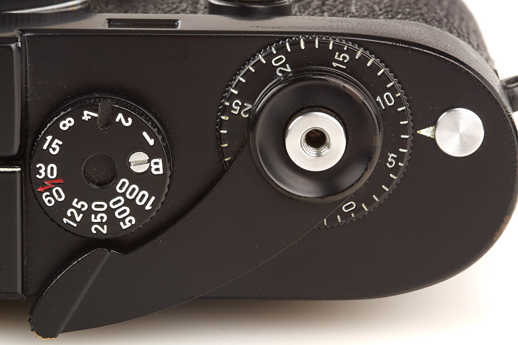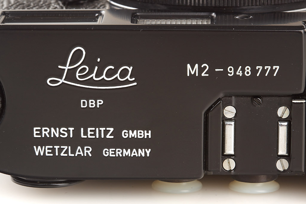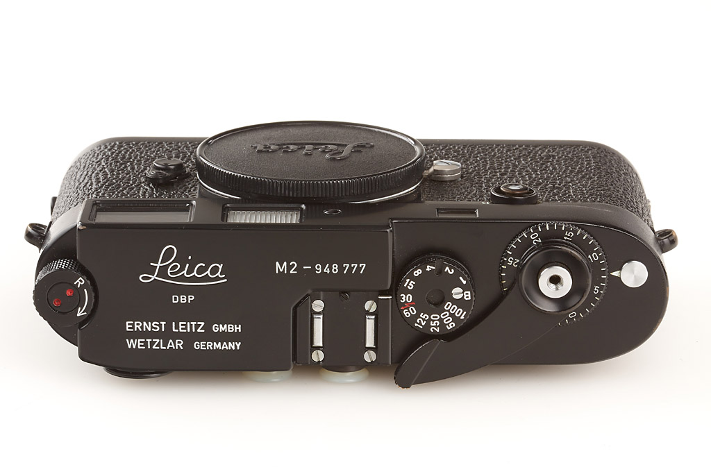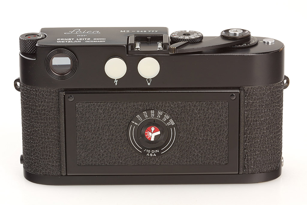 rare black painted M2 from the first batch (nos.948601-949100) with button rewind knob in near mint condition and perfect working order, restored by Leitz in the 70s with 100% original parts, (cap) - expertise by Ottmar Michaely