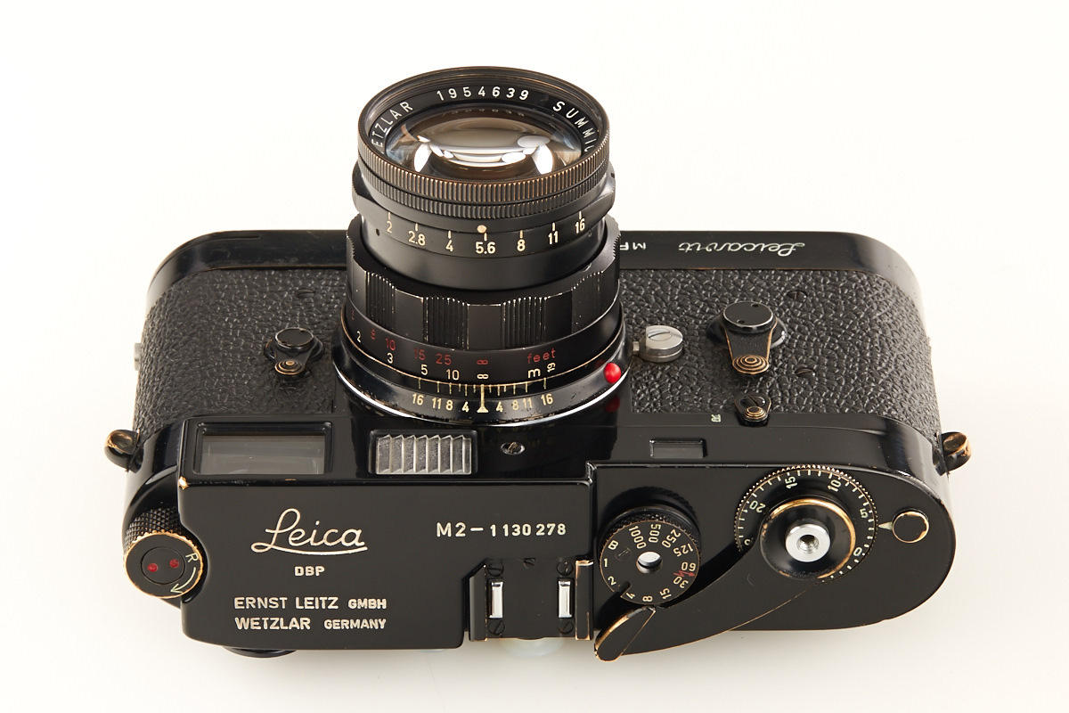 fully original late type Leica M2 black paint, in fine and perfect working condition, matching black paint Leicavit MP and black paint Summicron 2/50mm no.1954639 (black paint cap) - a beautiful set !