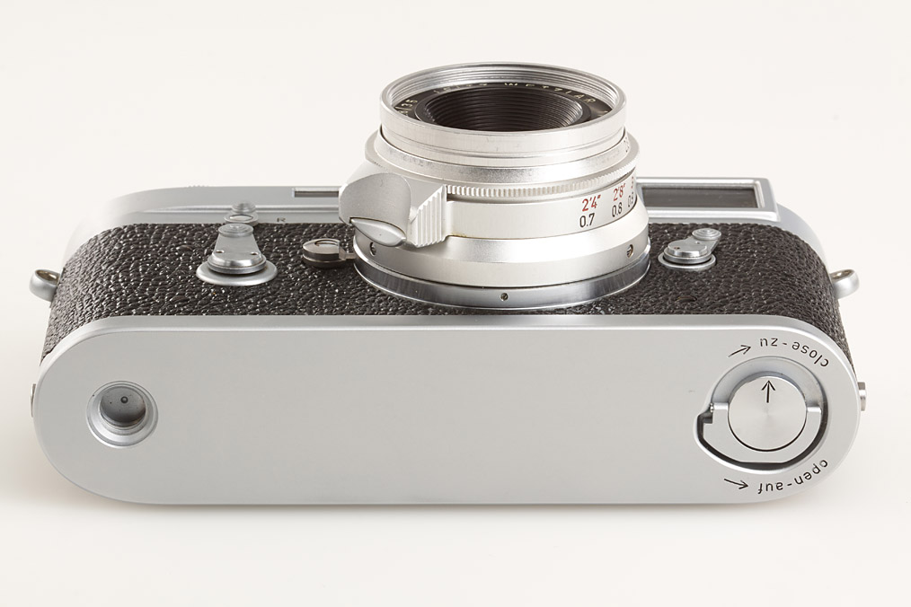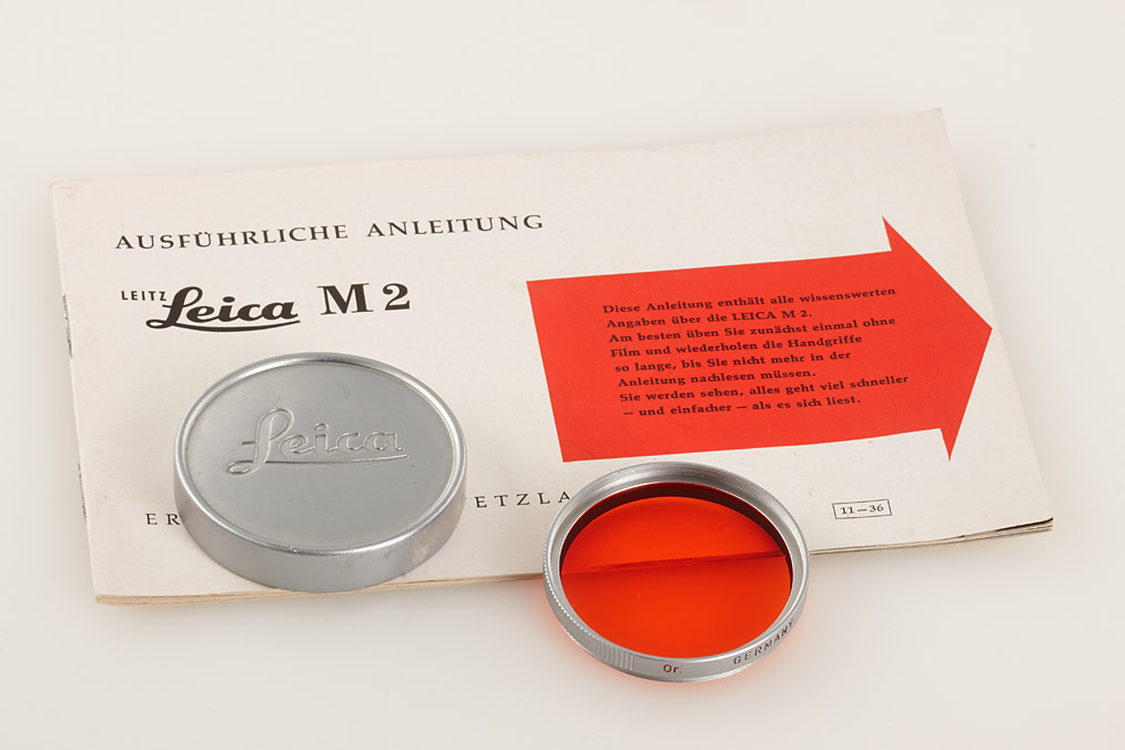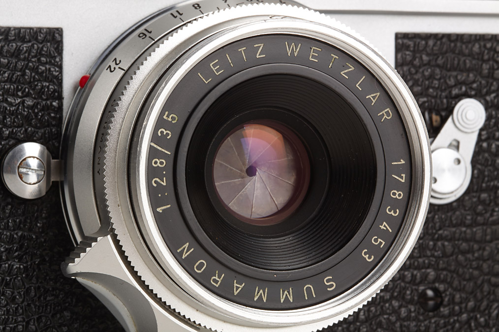 lever rewind body in good working condition with near mint Summaron 2.8/35mm no.1783453 (clean lenses, orange filter, cap), instructions