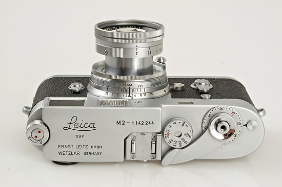 late version body in excellent condition, collapsible Summicron 2/5cm no.1326293, (condition A-), cap, M2 maker's box