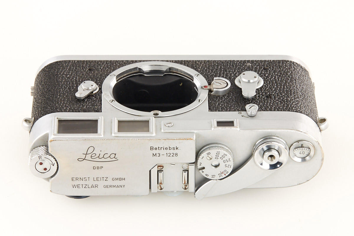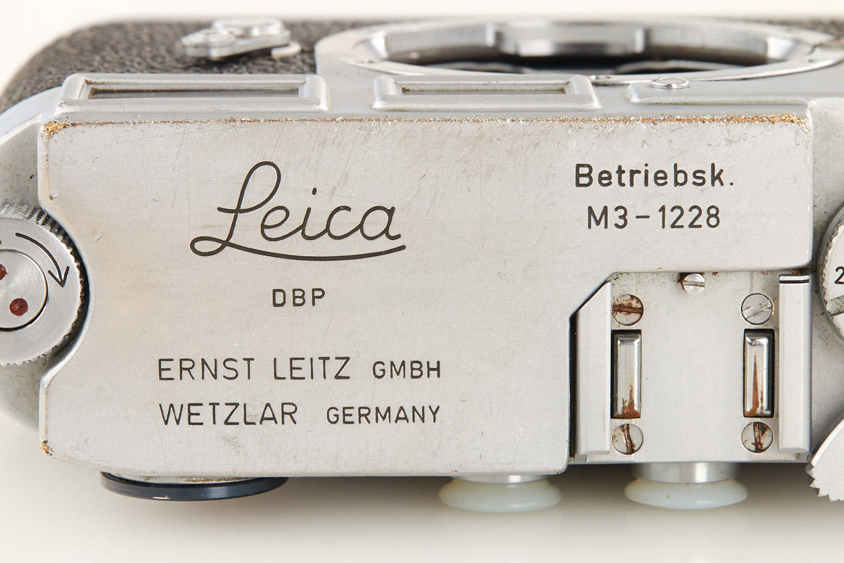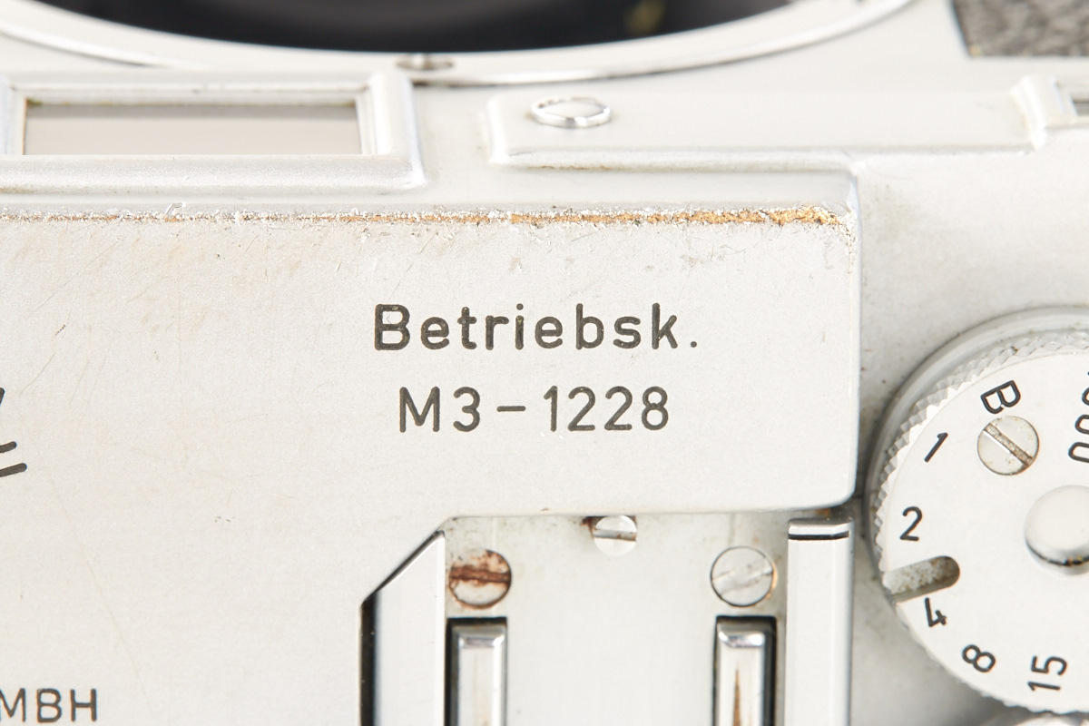 very rare, late and 100% original double stroke M3 Betriebskamera (for internal use), exactly this camera is illustrated in Rogliatti's book 'Leica the First 70 Years', p.26, in Leitz container for internal assembling - ex Rogliatti collection