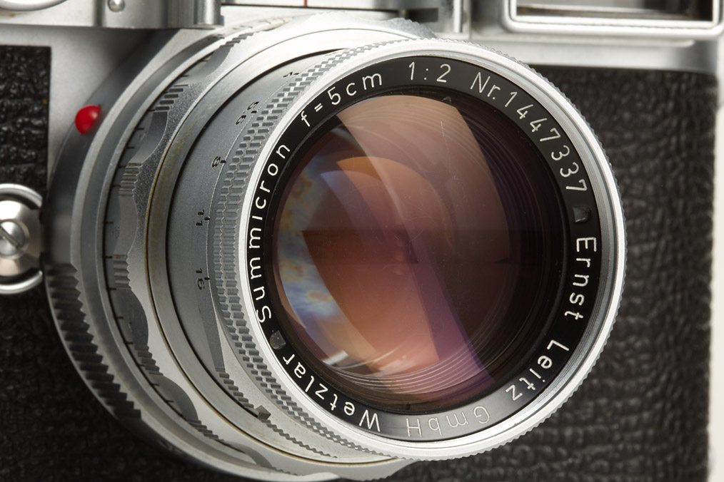 body in fine condition and working condition (Jnv.no.91655 engraved on back of top plate), CF Summicron 2/5cm no.1447337 (some cleaning marks), viewfinder attachment, cap