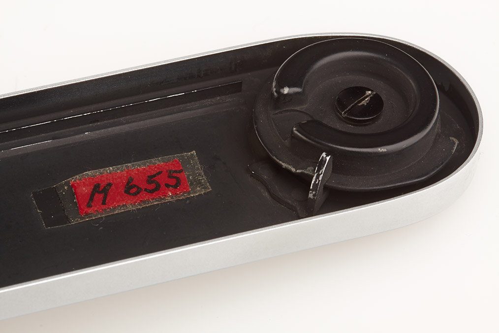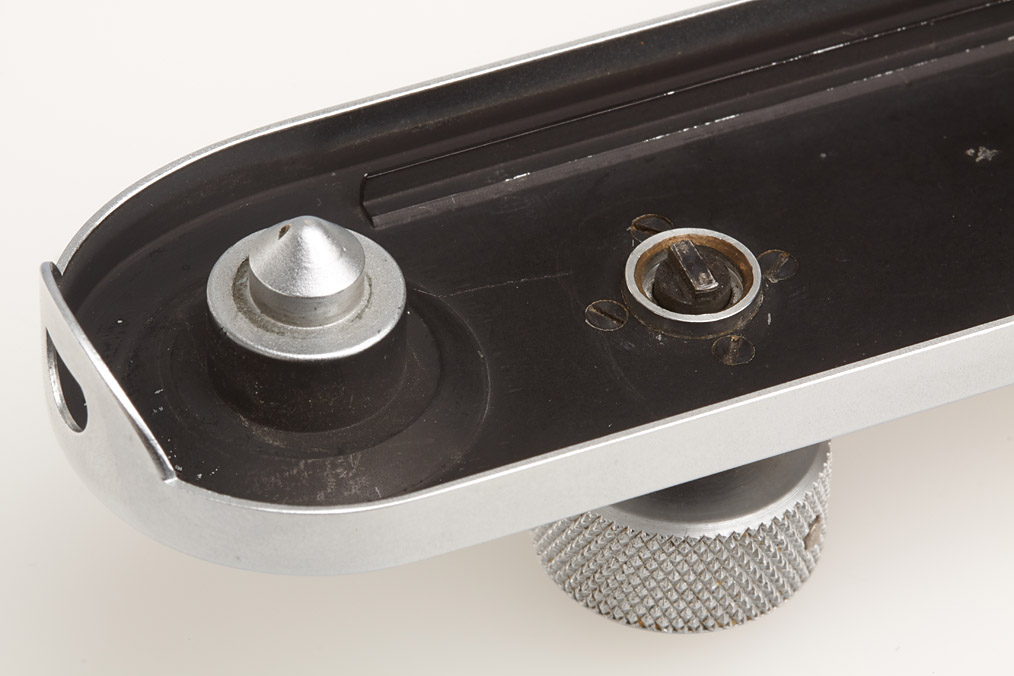 unique prototype base plate with winding knob for the famous M3 with Leica Motor (illustrated in 'Lager Vol. I' p.178-179), with original Leitz Museum inventory stickers M655 and 1326