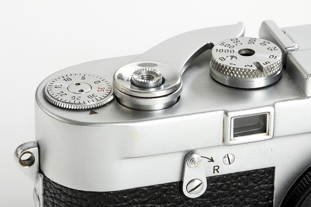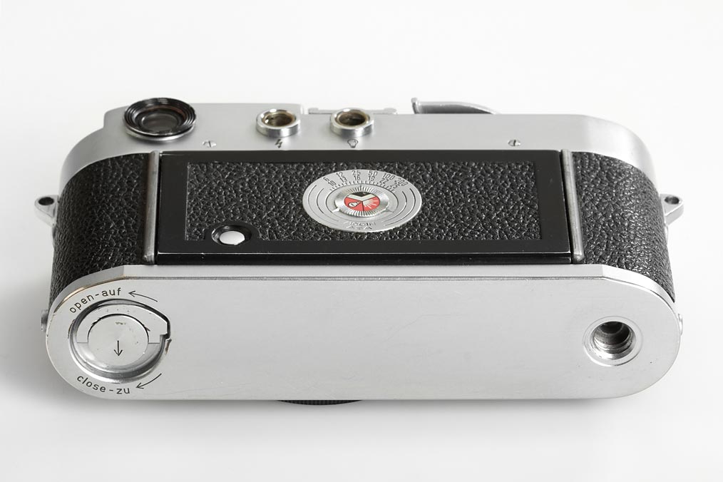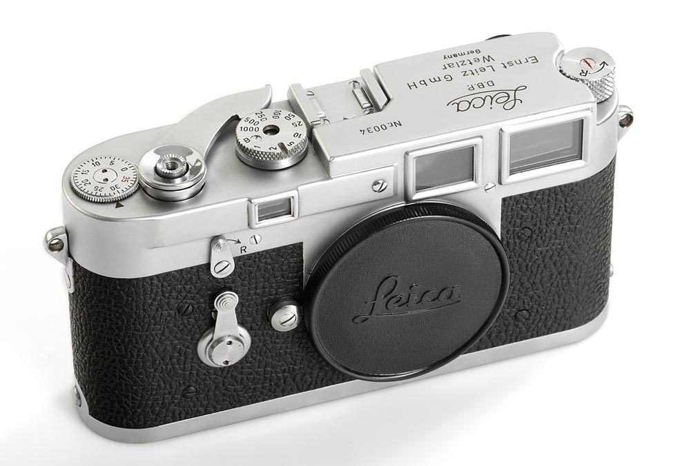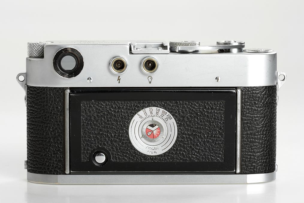 extremely rare M3 prototype, approx.65 of these were produced as test cameras in 1952/53 - very very few have survived. The camera is in perfect working condition and all details are original including film advance lever, external frame counter, early speed dial, shape of selftimer, reversed direction rewind knob, backdoor with film marker punch and ceramic pressure plate. The cameras nos. 005, 0041, 0043 and 0056 are illustrated in Lager vol.I, p.173-175. This is a wonderful opportunity to acquire one of the most important cameras in Leica's history.