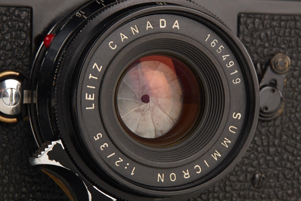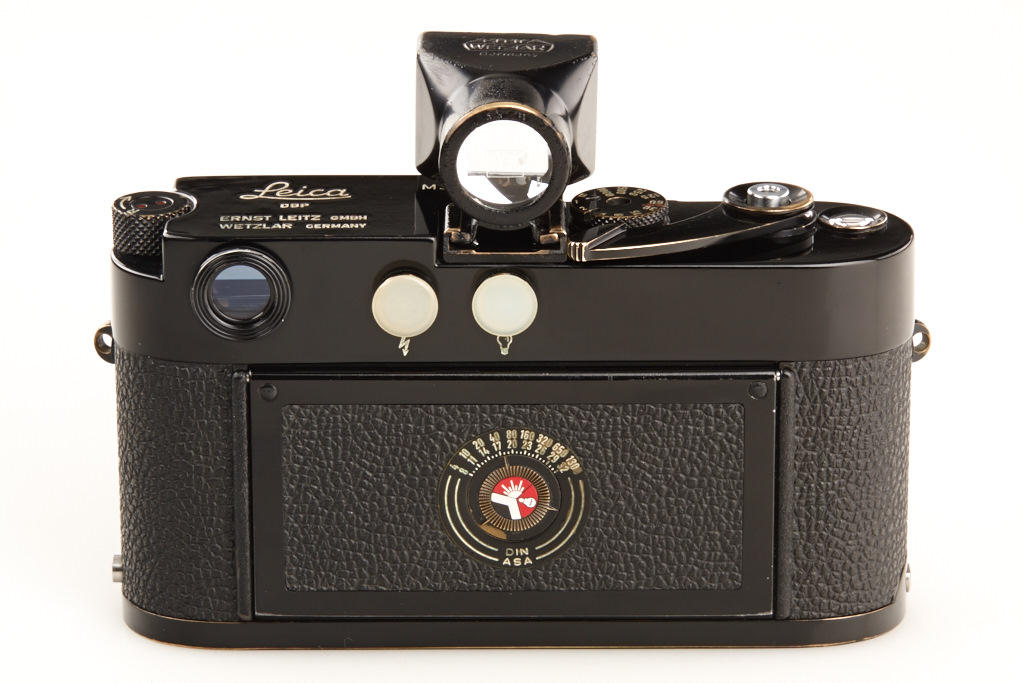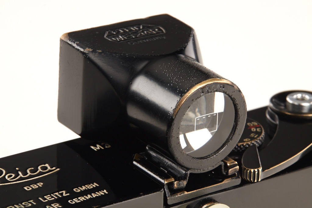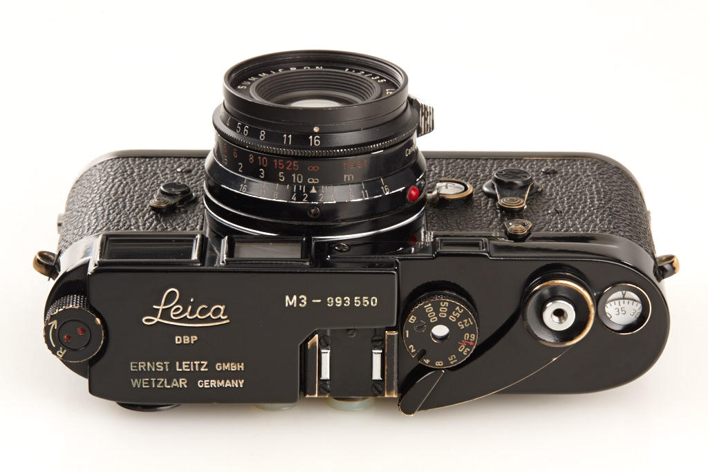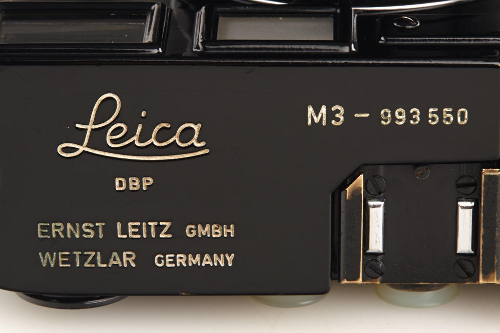 rare black paint M3 body in fully original condition, never repainted or restored, clean finder, perfect shutter, made in a batch of 250 cameras (nos.993501-993750), with partly black painted 'dual mount' Summicron 2/35mm no.1654919 (black painted cap), black painted 3.5cm SBLOO finder, everready case