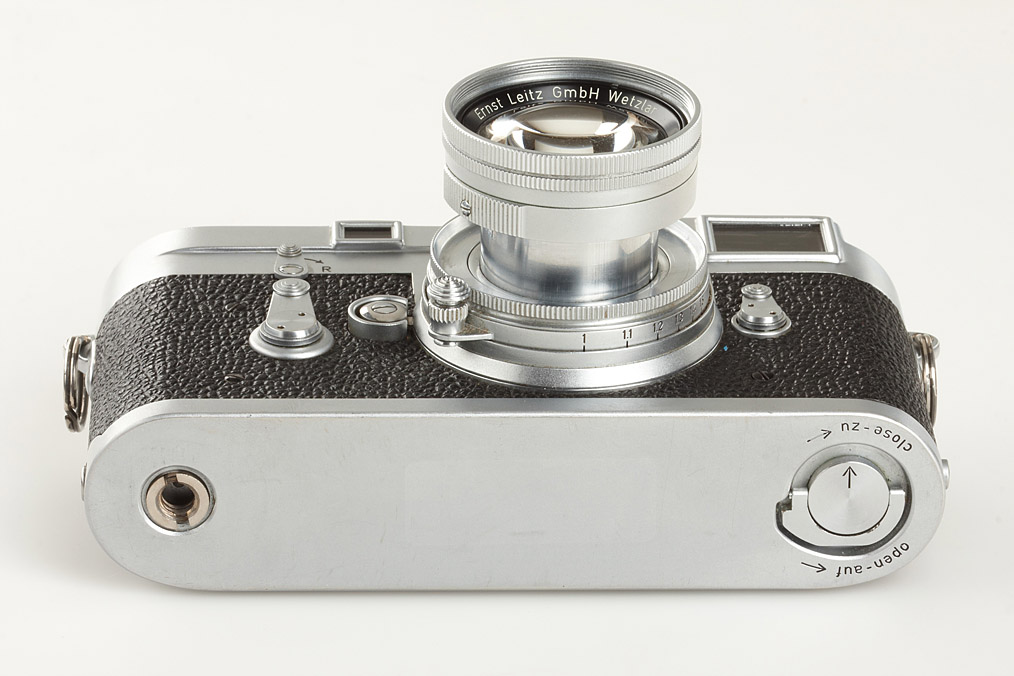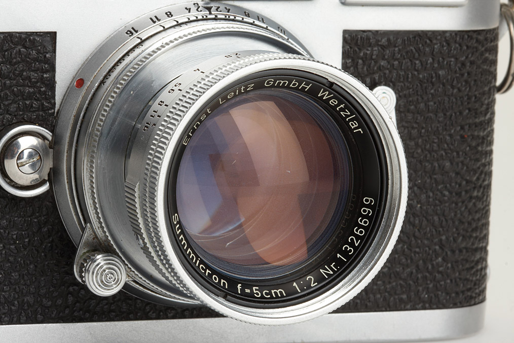 camera in working order (still L-sealed), with collapsible Summicron 2/5cm no.1326699 (few cleaning marks), instructions