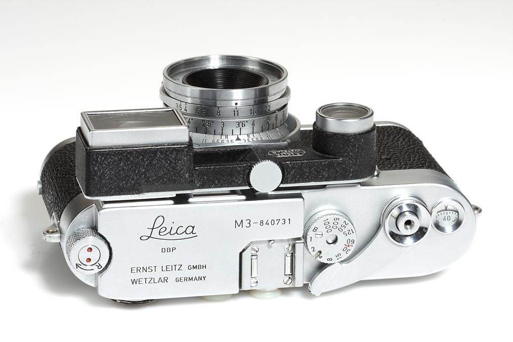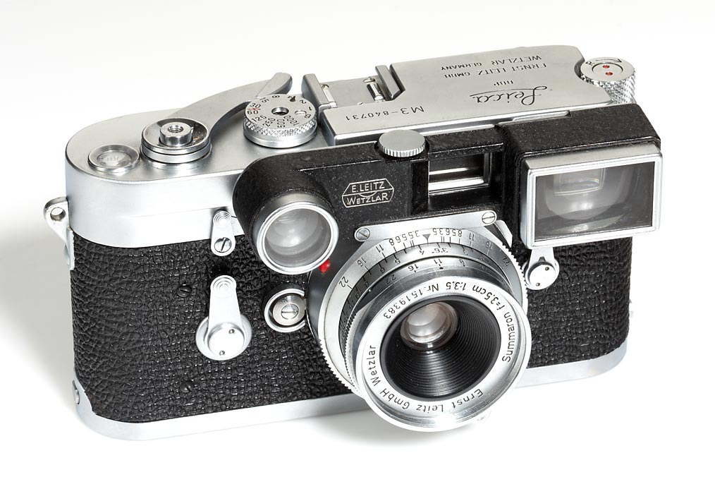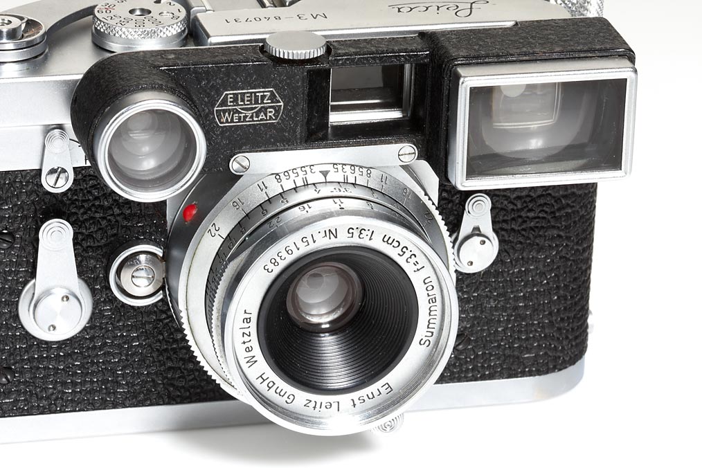 double stroke body in perfect working order with typically Canada engravings, CF Summicron 2/5cm no.1468474 (with spectacles), Summaron 3.5/3.5cm M3 no.1519383, Elmar 4/90mm no.1503684, Hektor 4.5/13.5cm no.1647174, all lenses with caps, 5 filters, in matching outfit case