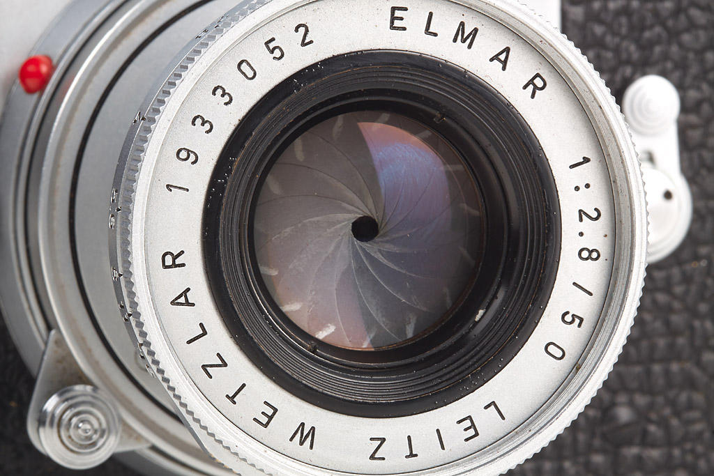 very late chrome body in near mint condition, no collar around lens lock release button, with matching Elmar 2.8/50mm no.1933052 (clean lenses, cap)