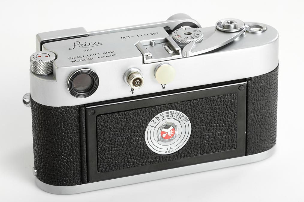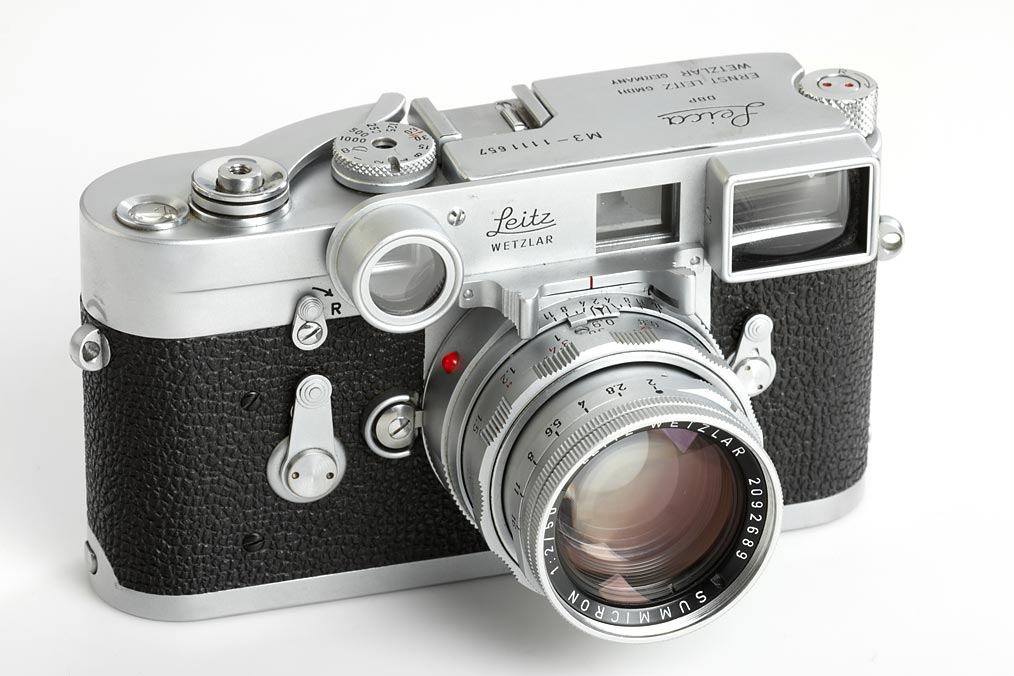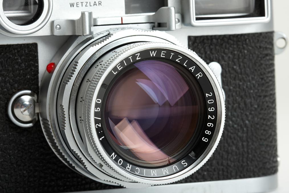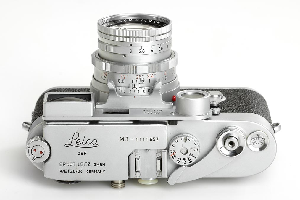 late single stroke body in good working order, dual range Summicron 2/50mm no.2092689 (cond.B+), Summaron 2.8/35mm for M3 no.2007331 (cond.B-), Elmarit 2.8/90mm no.2044609 (cond.B+), Leicameter MR, caps, filters