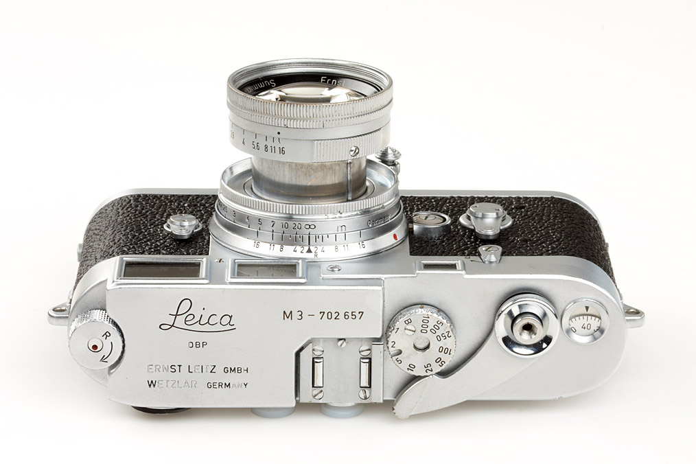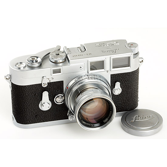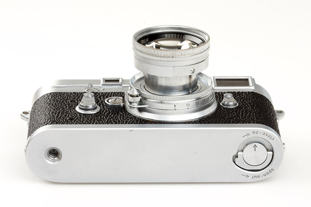 early double stroke body from the first year of production with all original features in fine and perfect working condition, clean finder and shutter, matching Summicron 2/5cm no.1166879, (meter scale, cap), everready case