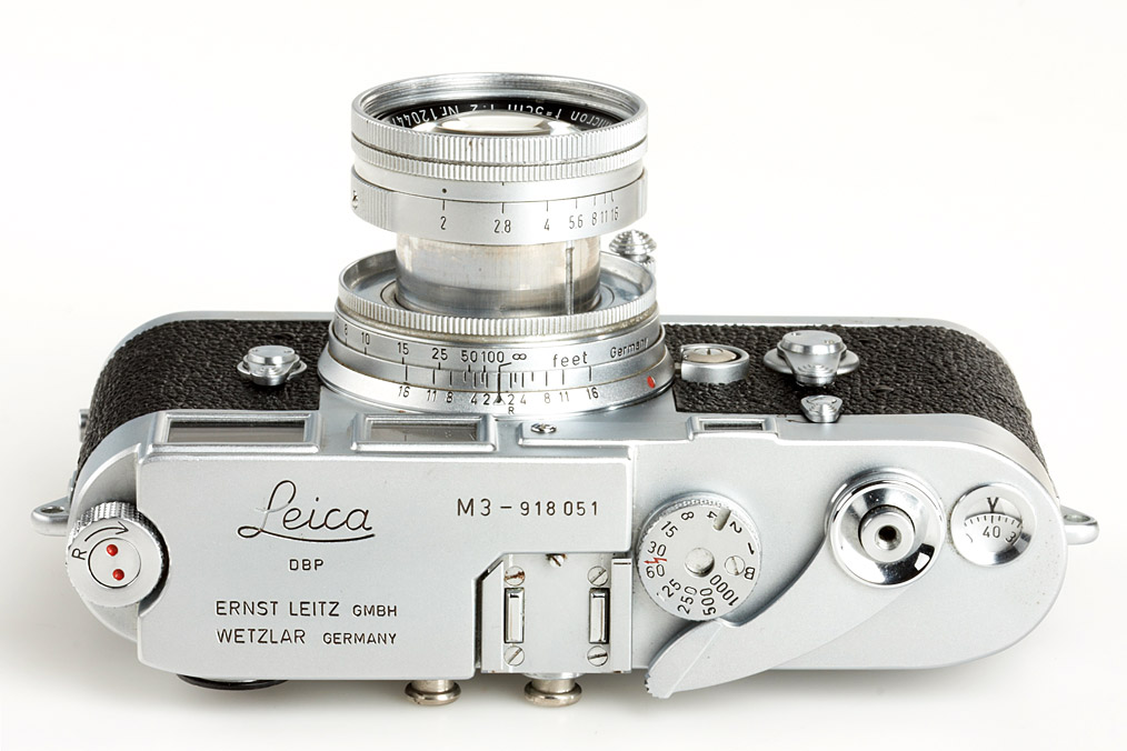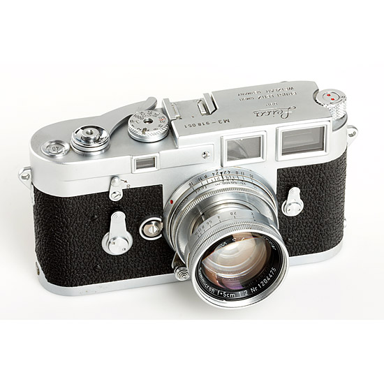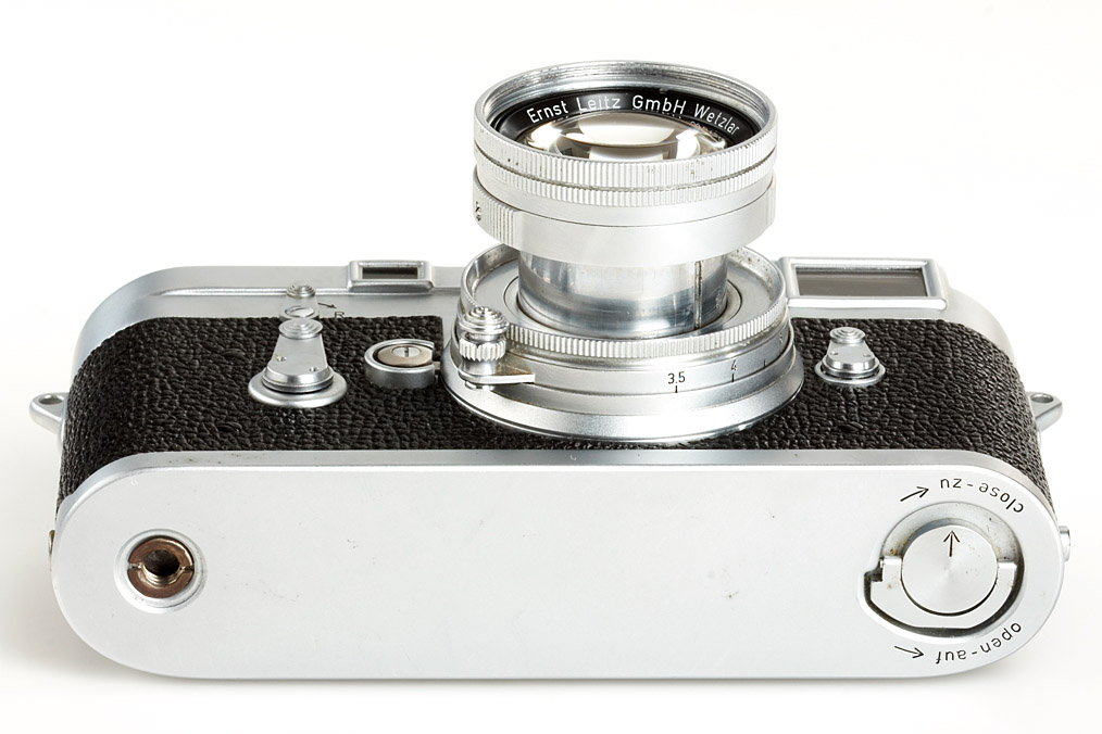 very late double stroke body (single stroke film advance lever starts at no.919251) in good working order with collapsible Summicron 2/5cm no.1204475