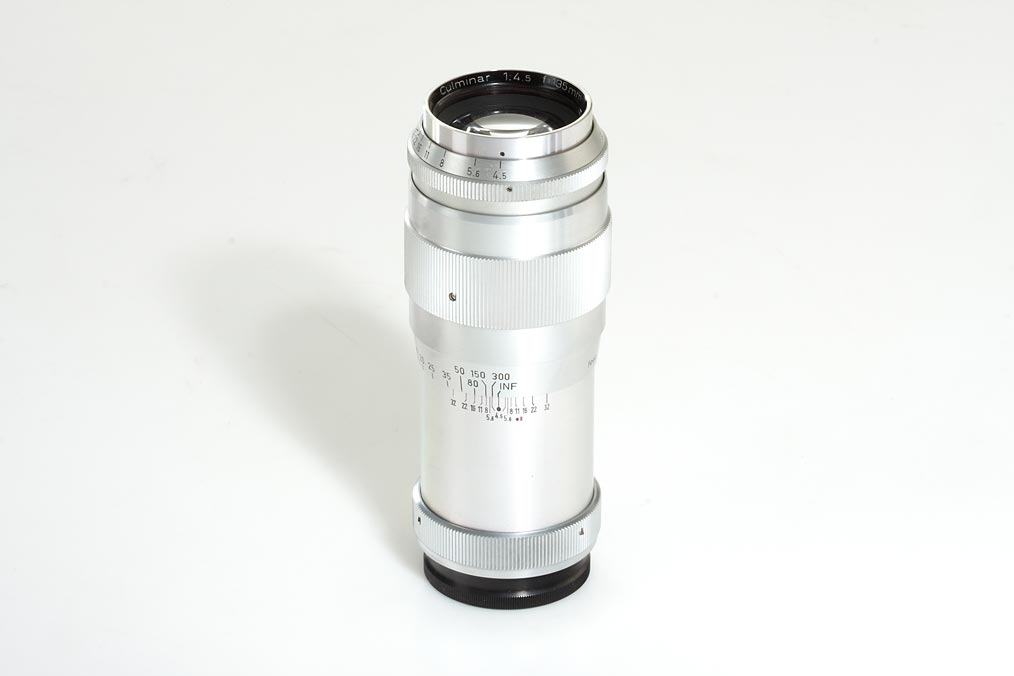 Steinheil Orthostigmat 4.5/35mm no.835805 (cond. B-), Steinheil Culminar 4.5/135mm no.601230 (cond. A/B, keeper), Arco Tele-Colinar 3.8/13.5cm no.30470 (caps, keeper), Tanaka Tele-Tanar C 3.5/13.5cm no.13932 (caps, hood, keeper), Sankyo Khoki Komura 5/300mm no.3311897 (caps, keeper) (5)