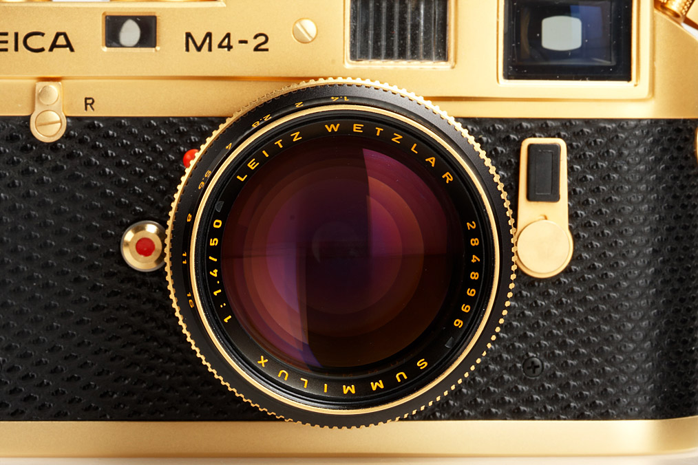 special gold edition Oskar Barnack 1879-1979, (special number 100-0093, gold plated Summilux-M 1.4/50mm no.2848996, new with wooden presentation box, all accessories, papers, maker's box