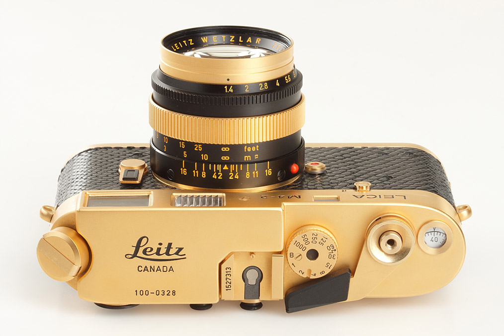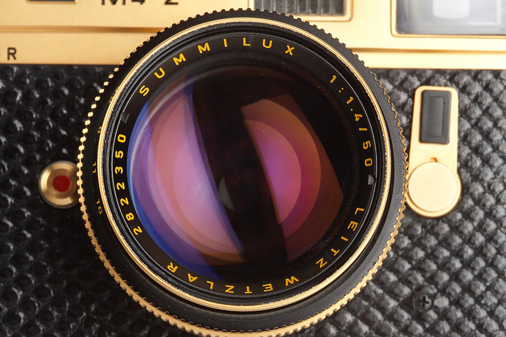 special gold edition Oskar Barnack 1879-1979, (special number 100-0328, gold plated Summilux-M 1.4/50mm no.2822350, new with wooden presentation box, accessories, instructions, maker's box