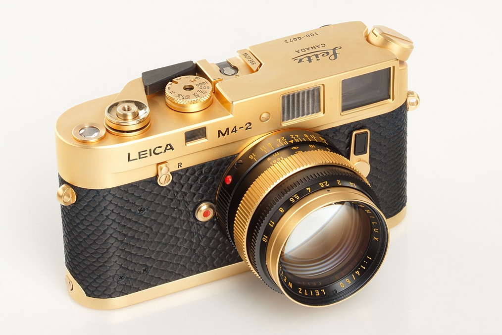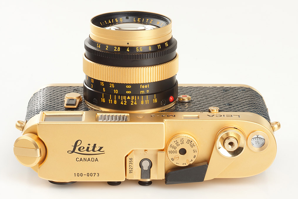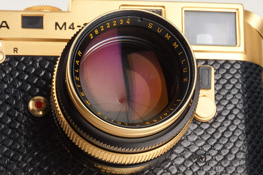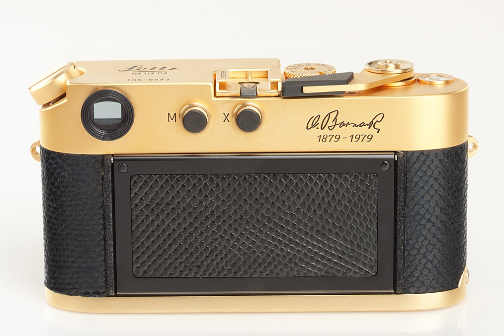 special gold edition Oskar Barnack 1879-1979, (special number 100-0073, gold plated Summilux-M 1.4/50mm no.2822234, in mint condition with maker's boxes of camera and lens, wooden box, cap, strap, certificate, instructions, maker's box