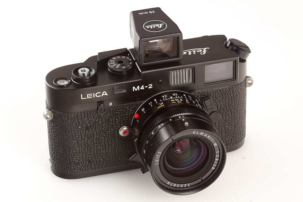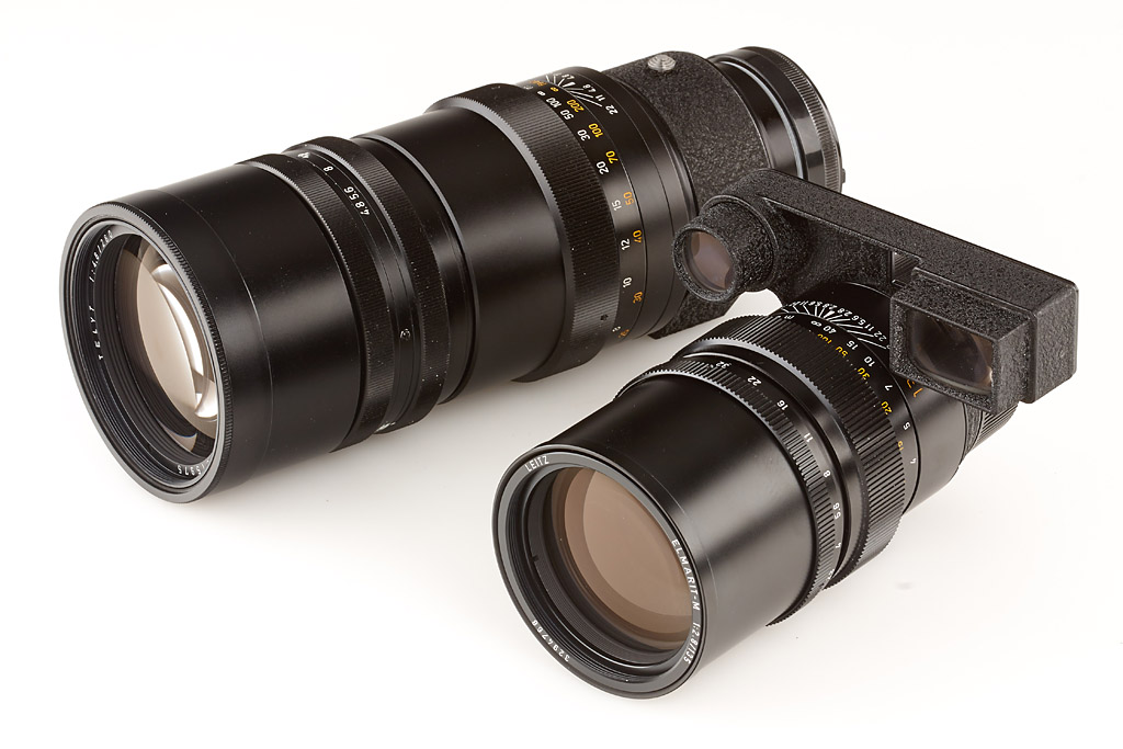 extensive outfit including mint body (cap), Elmarit-M 2.8/28mm no.3293878 (caps, filter) with 28mm BL finder, Tele-Elmarit 2.8/90mm no.2793905 (all black 12575 hood, caps), Elmarit-M 2.8/135mm no.3294768 (filter, caps), Visoflex III with prism, 5x magnifier, chrome Elmar 3.5/65mm no.1720811 in 16464 focusing mount (filter, caps), late M-mount Telyt 4.8/280mm no.2815975 (filter, caps), Photar 2/25mm with adapter, M4-2 Winder, OUBIO adapter, two chrome 16471 adapters, chrome 16472 adapter, three 16469 extension rings, Leica TO-R adapter, 14167 M-R adapter, three close-up lenses (2x Elpro VIb, 1x Elpro 2 16542), all in mint condition