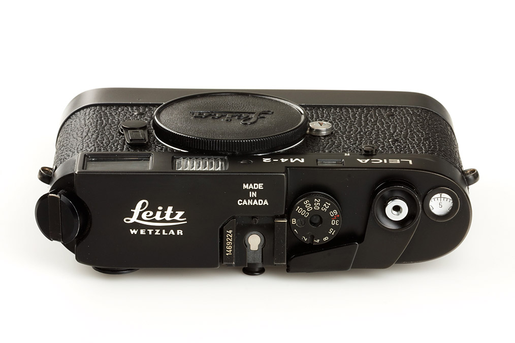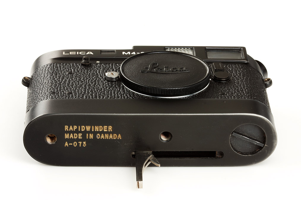 early body in perfect working order, engraved: Leitz Wetzlar Made in Canada, Abrahamson Rapidwinder (Made in Canada no.A-075) and black Leicameter MR-4 no.52387