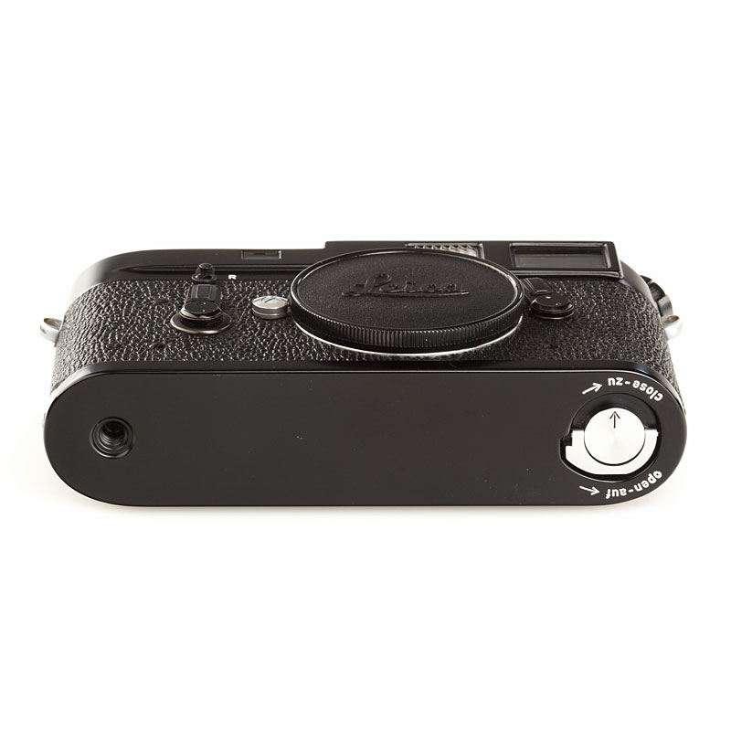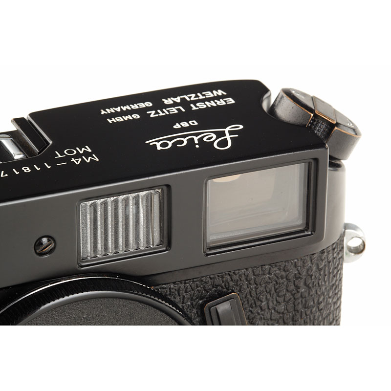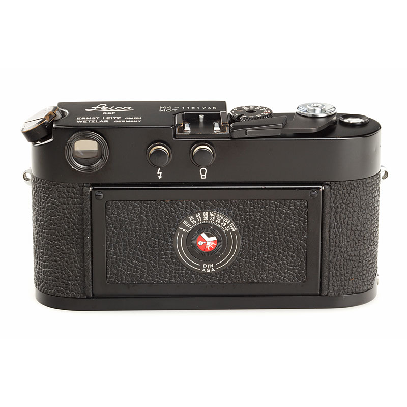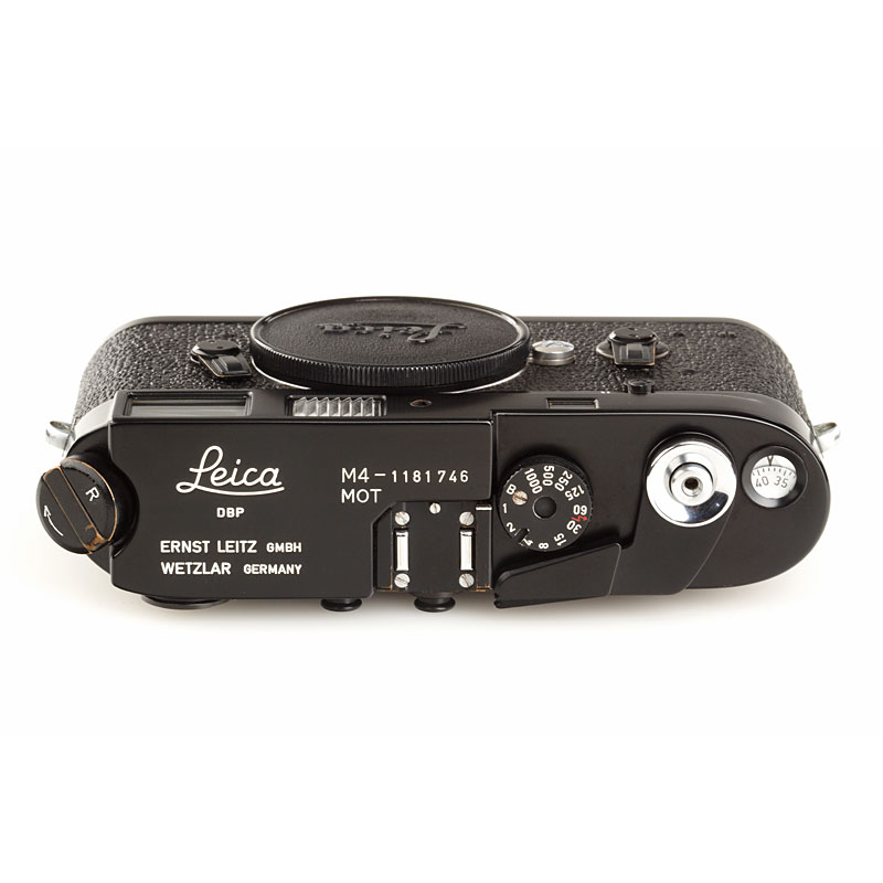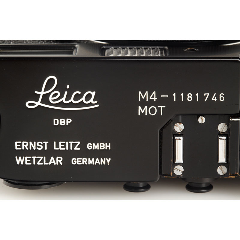 black paint M4 MOT in very fine condition, from the first batch of black painted M4 cameras and later upgraded by Leitz to accept the New York motor drive