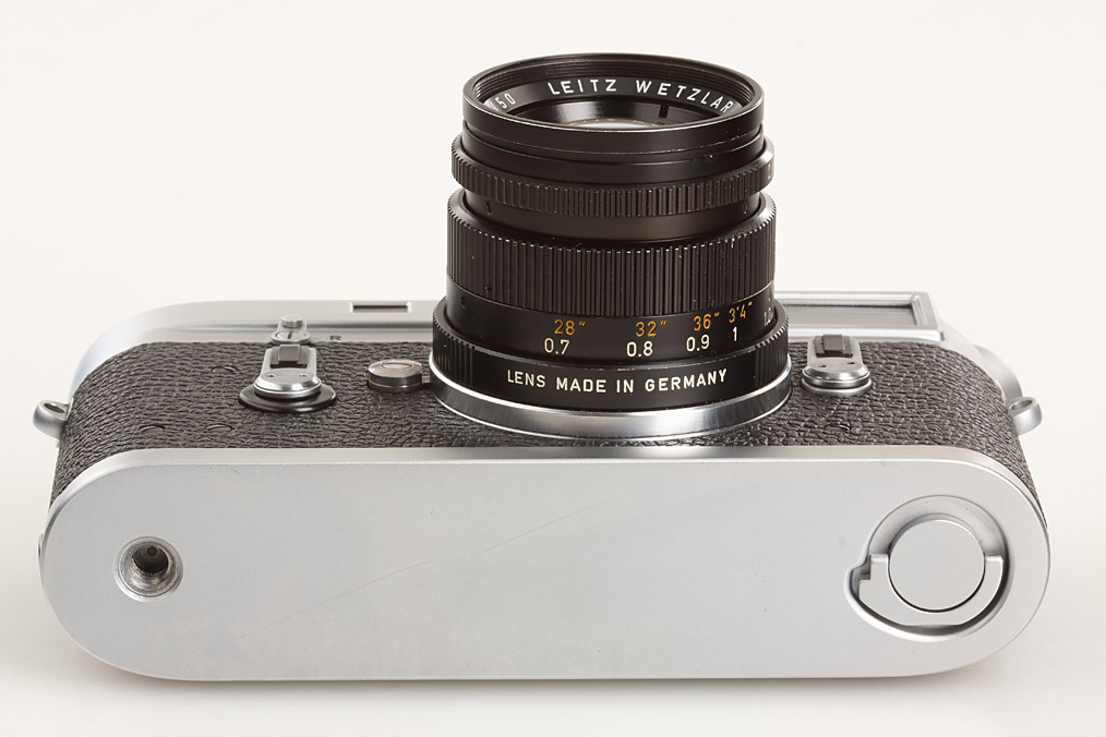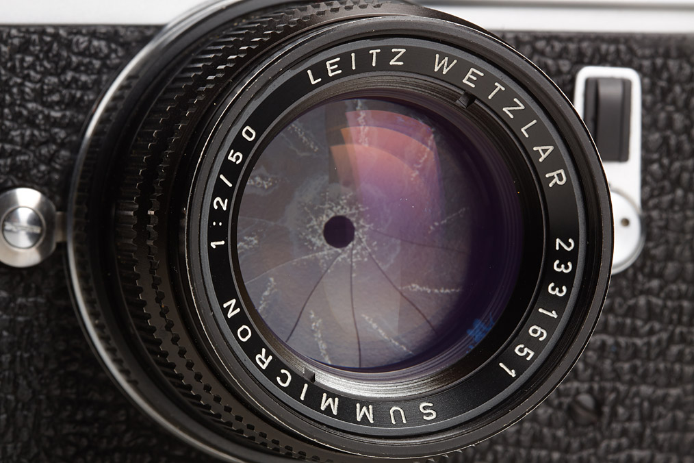 in fine condition and good working order with matching black 6-element Summicron 2/50mm no.2331651 (filter, 12585 hood, cap), a maker's box