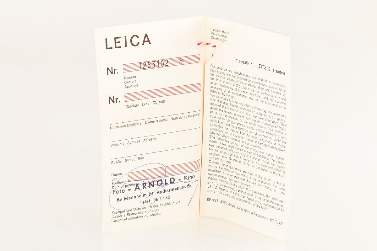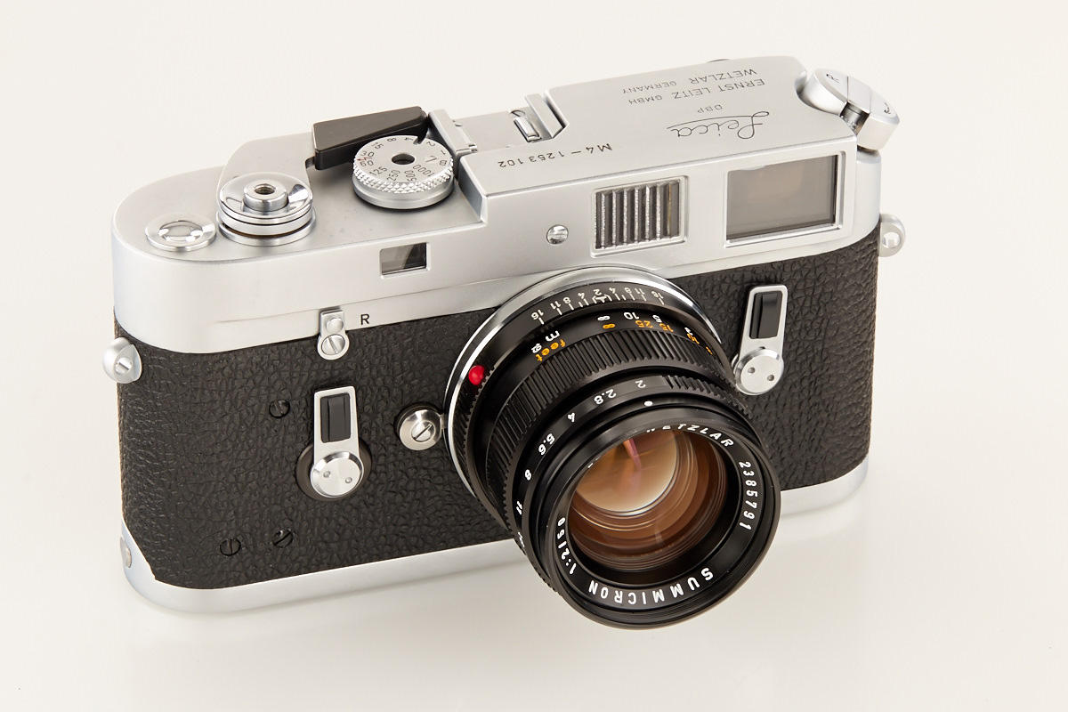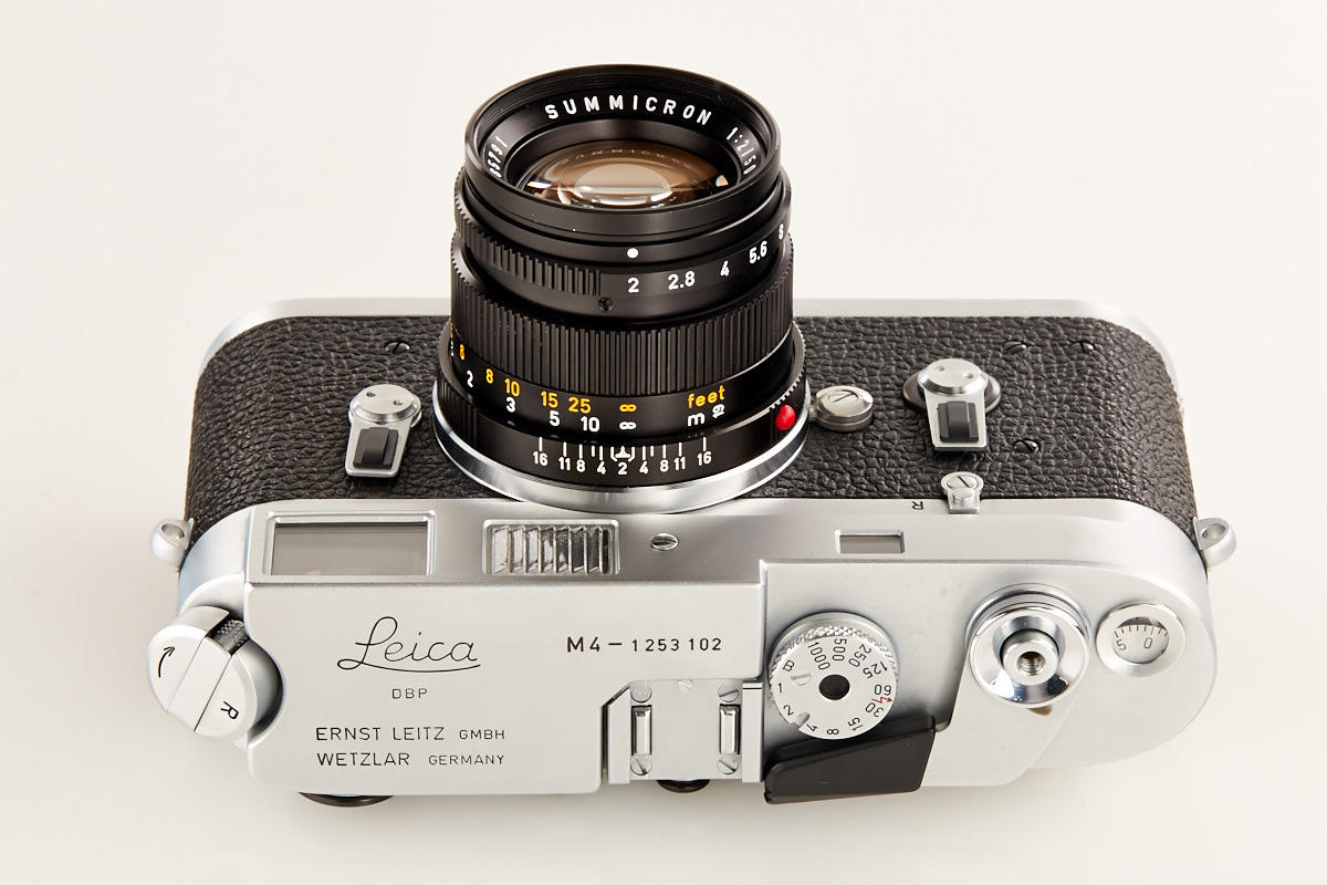 absolutely new M4 with matching black Summicron 2/50mm 11817 no.2385791 (clean lenses, 12585 hood, cap, keeper), instructions, both with service card and matching maker's box including black everready case