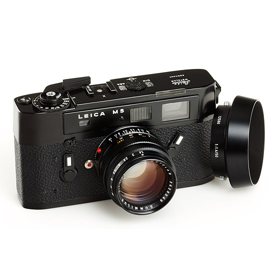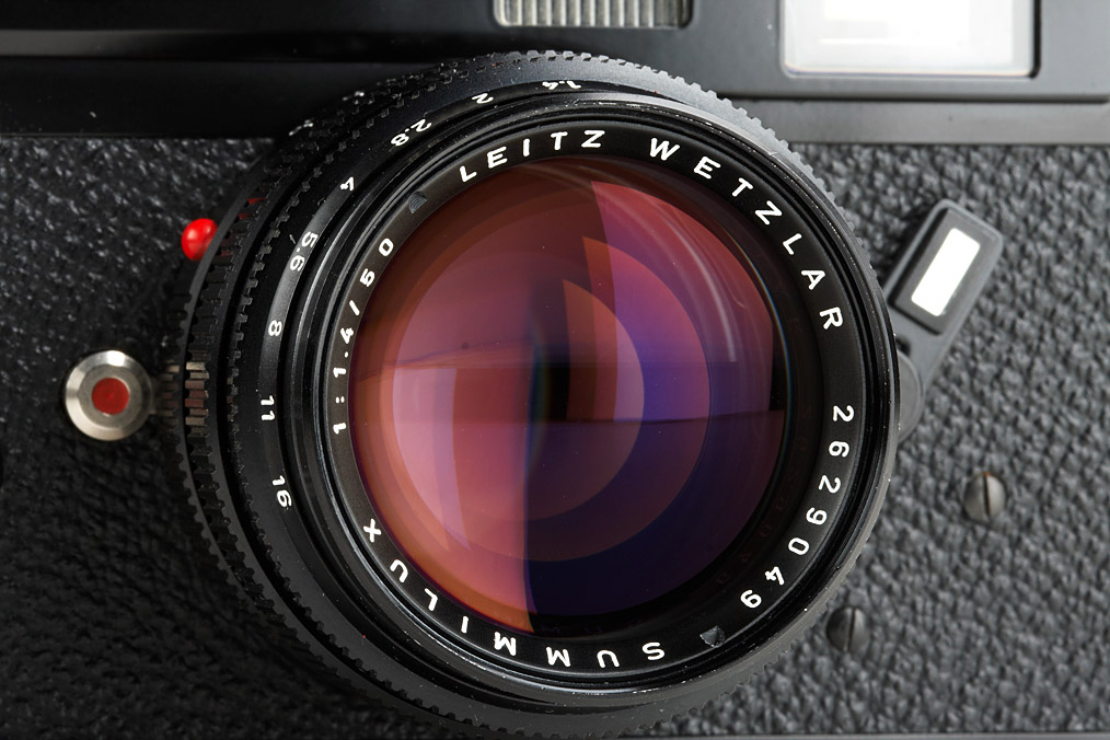 black painted 2-lug M5 body (made by special order) with Summilux-M 1.4/50mm no.2629049 (12586 hood, filter, cap, cond. A-)