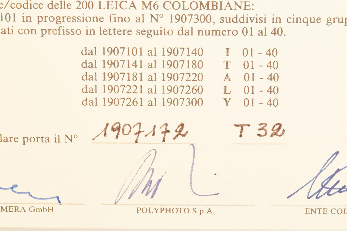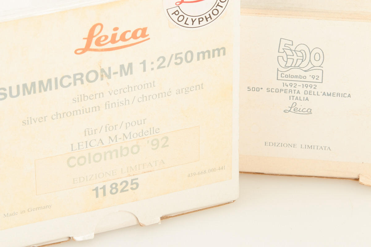 special edition of 200 cameras only, for 500 years discovery of America, complete with matching 2/50mm Summicron no.3623672, both with special number T32, complete in maker's boxes