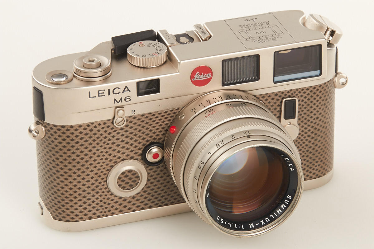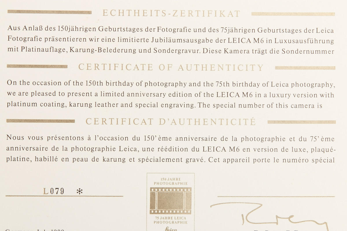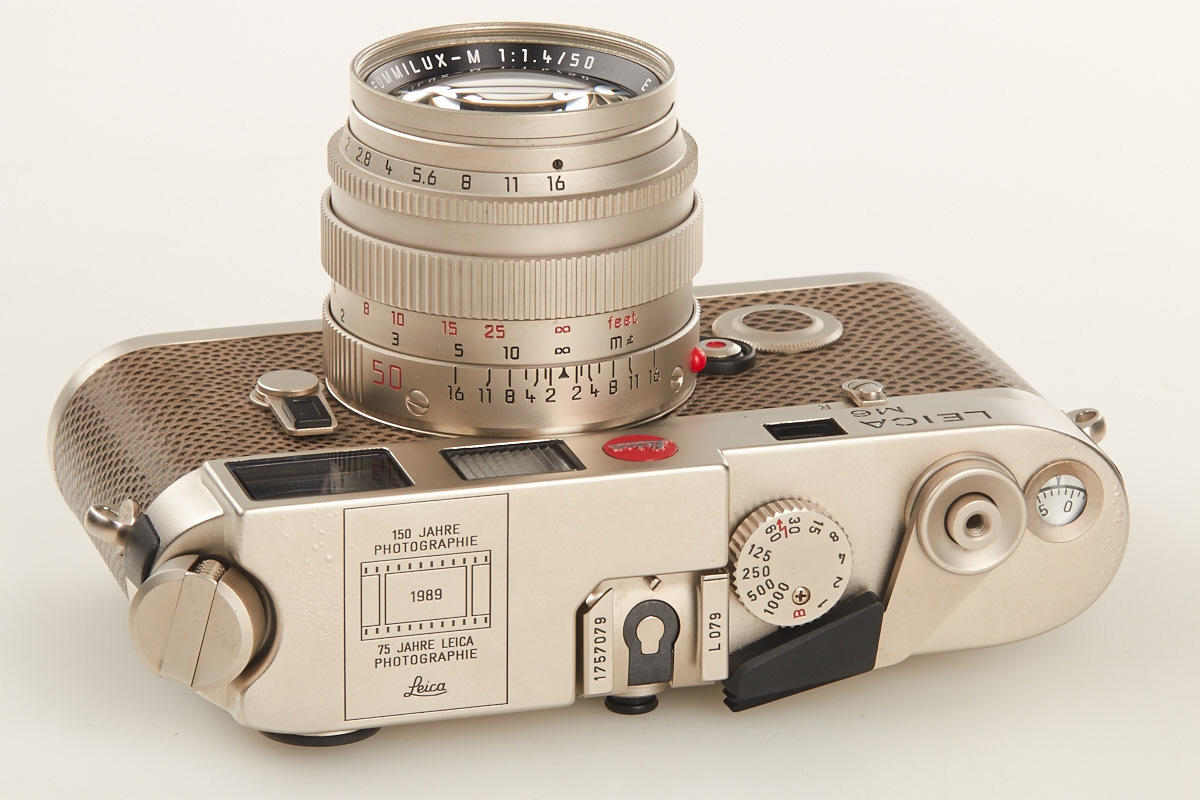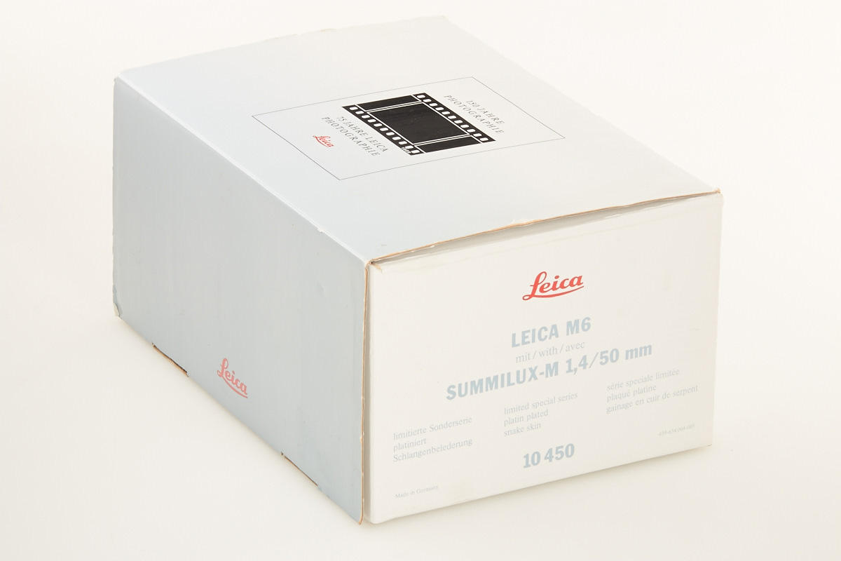 special edition for 150 years of photography and 75 years of Leica photography (special number L079), platinum Summilux-M 1.4/50mm no.3482136, with wooden presentation box, all accessories, papers, maker's box
