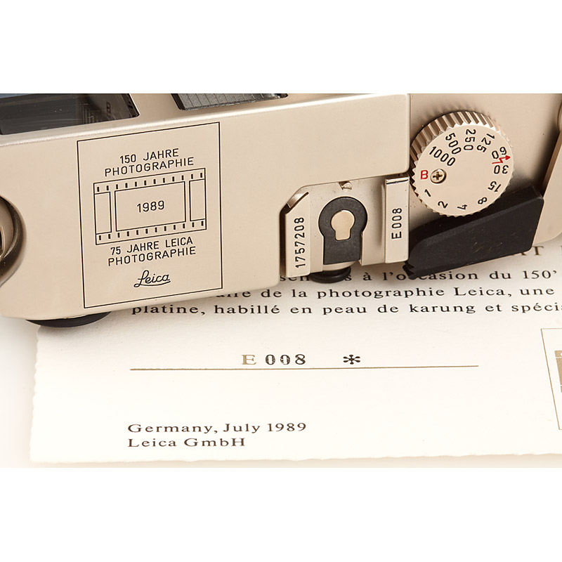 special edition for 150 years of photography and 75 years of Leica photography (special number E008), platinum Summilux-M 1.4/50mm no.3482668, new with wooden presentation box, all accessories, papers, maker's box