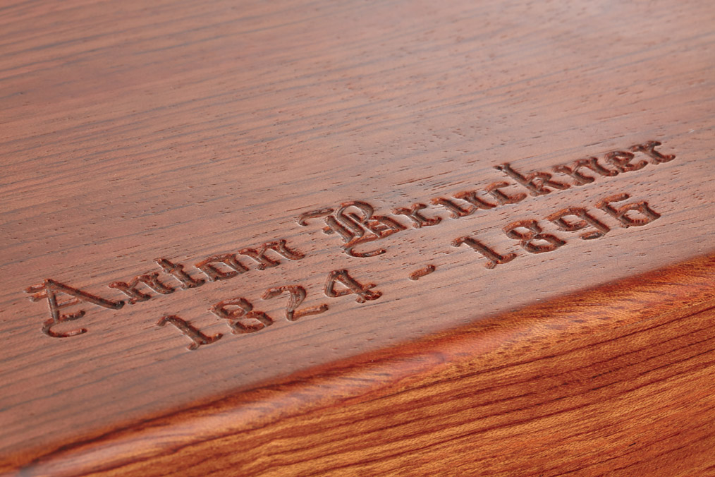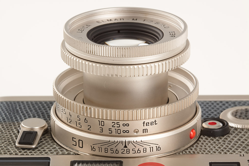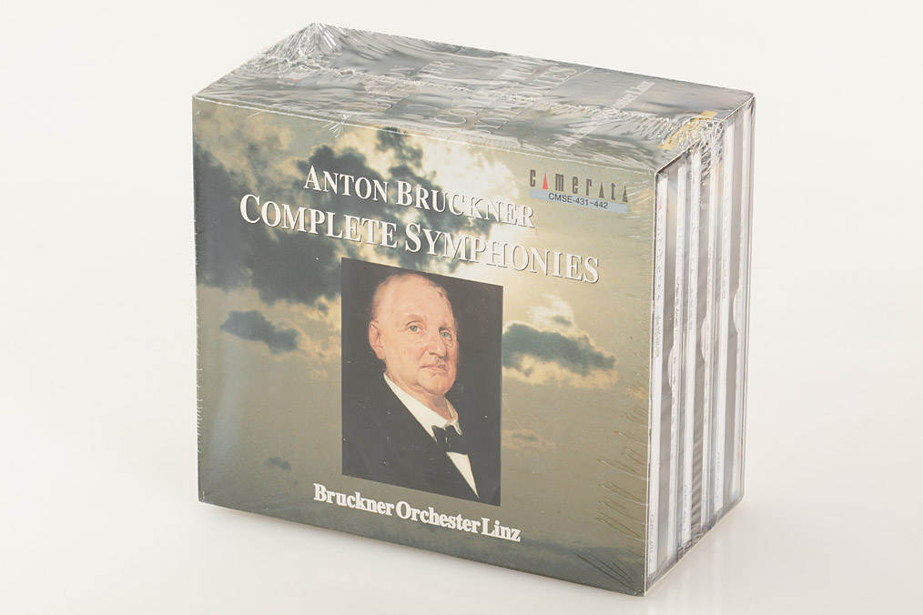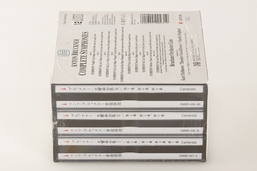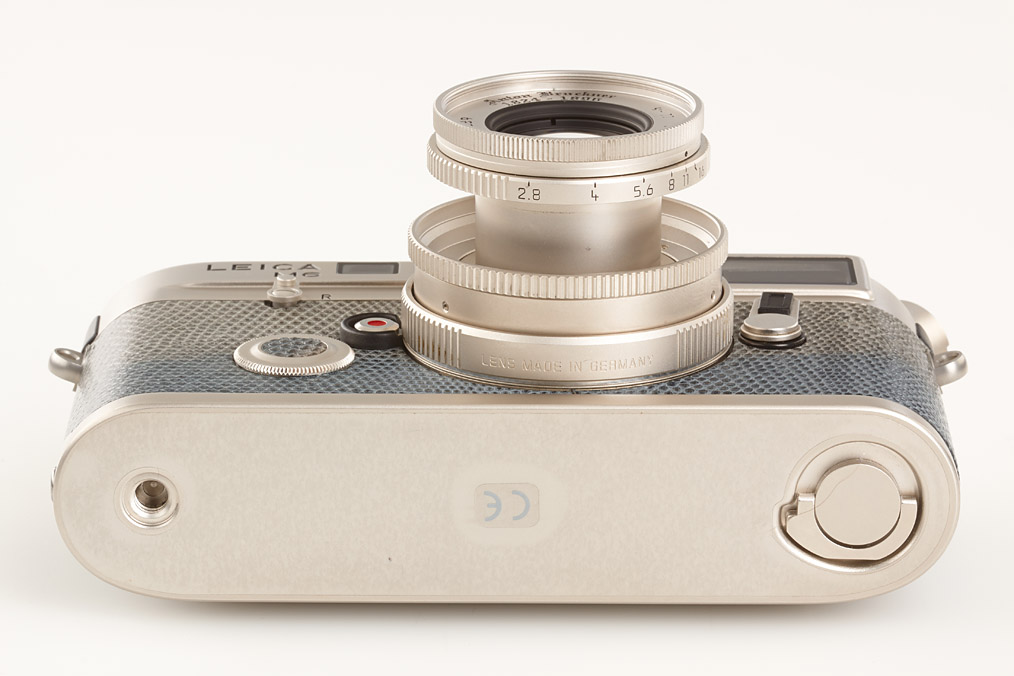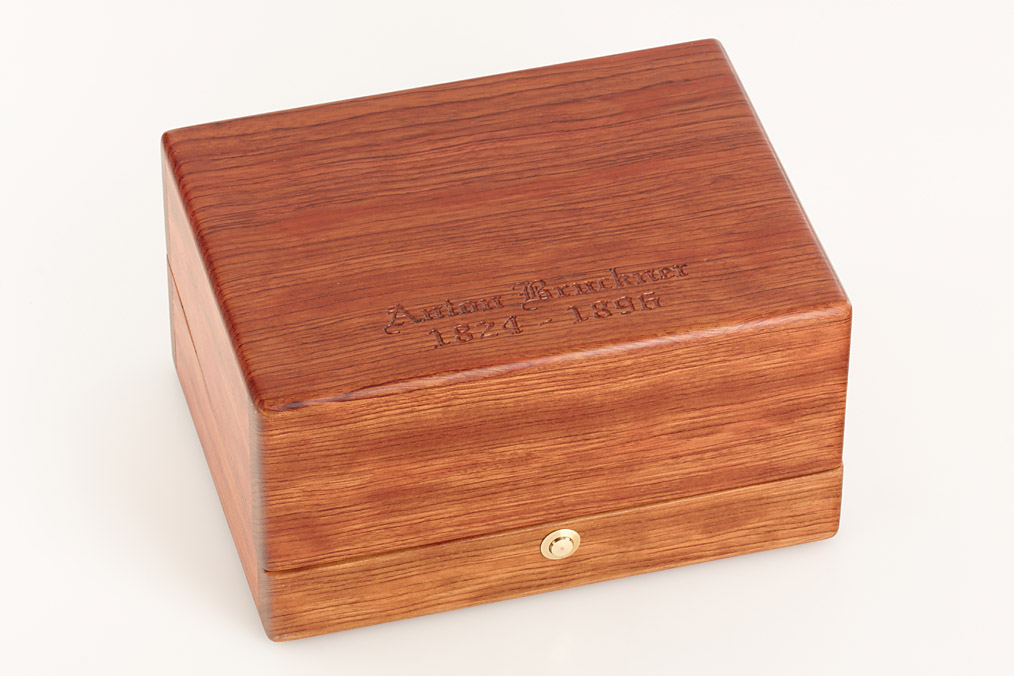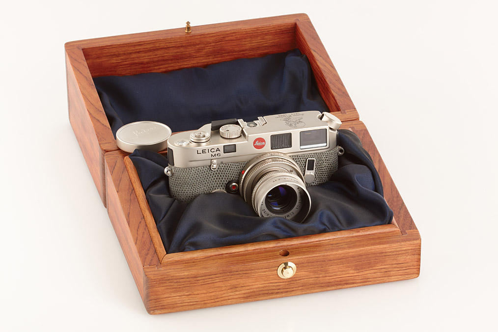 edition of 200 cameras for the Austrian composer Anton Bruckner, platinum finish with special Elmar 2.8/50mm, both with special number 9-11, except a small dent on top plate in mint condition, complete with CD's, wooden box, papers and outer maker's box