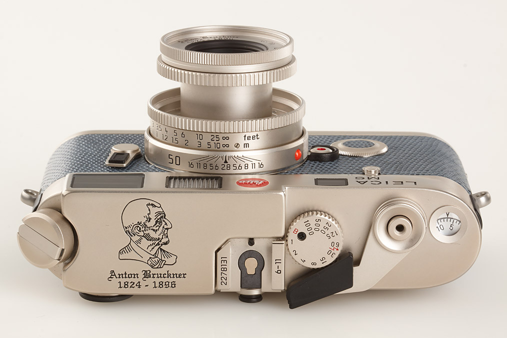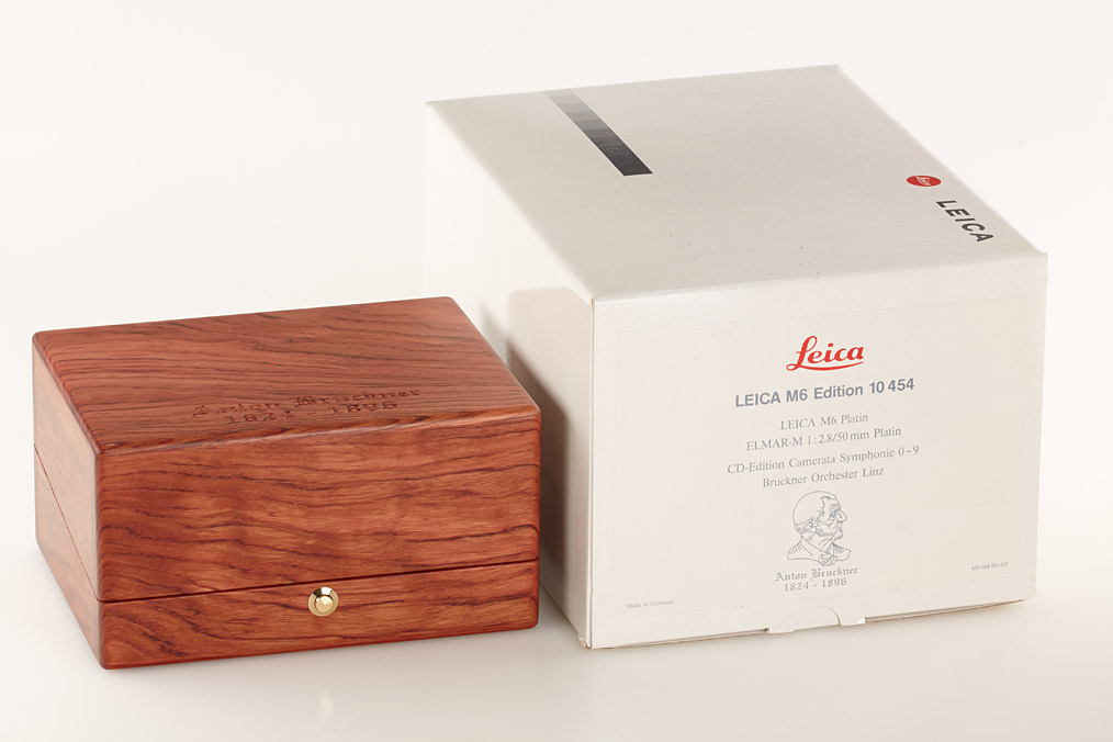 new edition of 200 cameras for the Austrian composer Anton Bruckner, platinum finish with special Elmar 2.8/50mm, both with special number 6-11, complete with CD's, wooden box, papers and outer maker's box